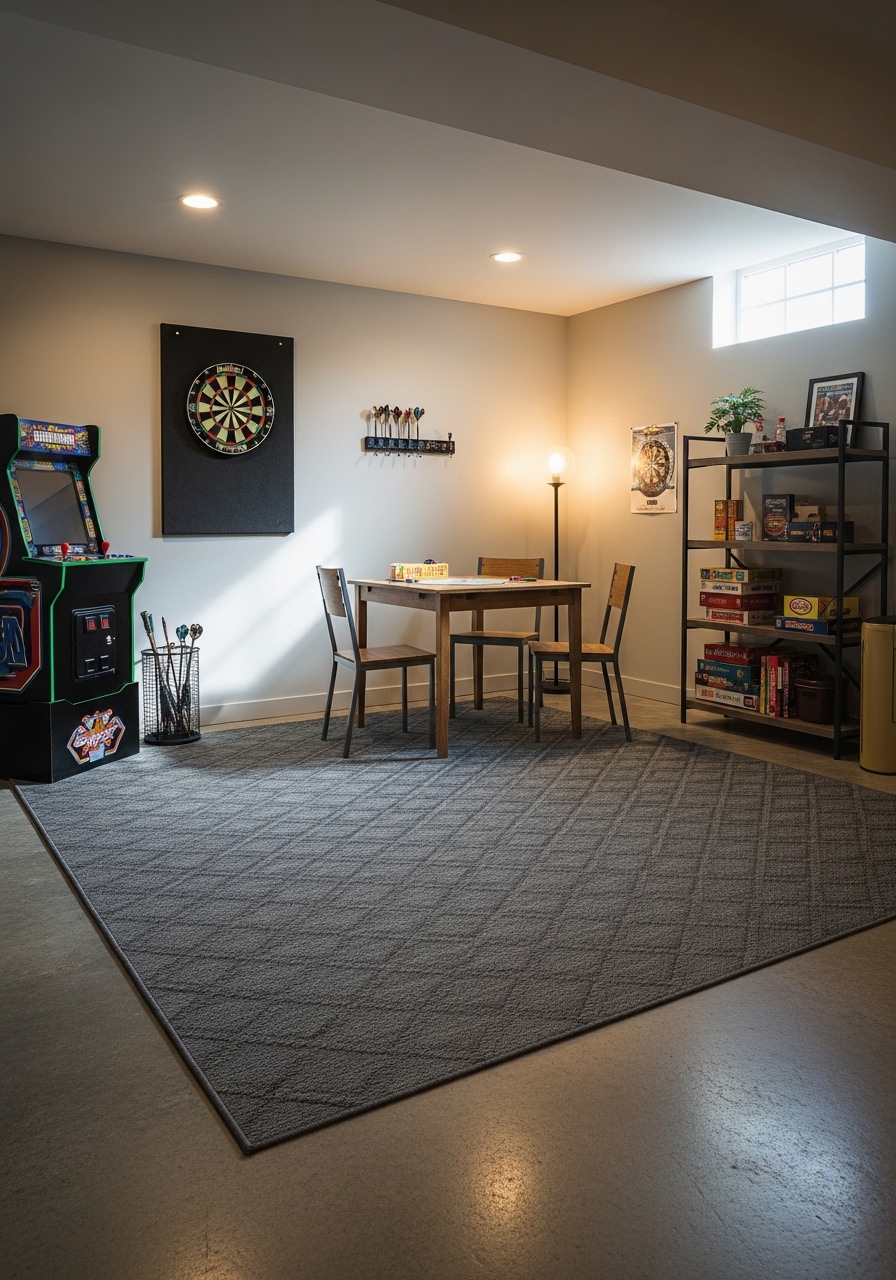 Low-Profile Outdoor Rug for Basement Family Rooms