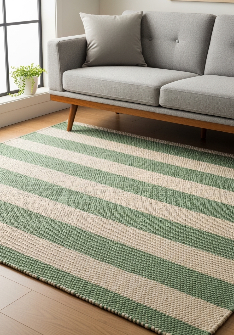 I installed a neutral flatweave 8×10 for a clean Scandinavian feel. Texture reads as warmth without color. Try 8×10 neutral flatweave rug stripes and light oak coffee table. Styling tip: add a single black accent for contrast. Mistake to avoid: choosing flatweave with a pattern that fights the furniture lines.