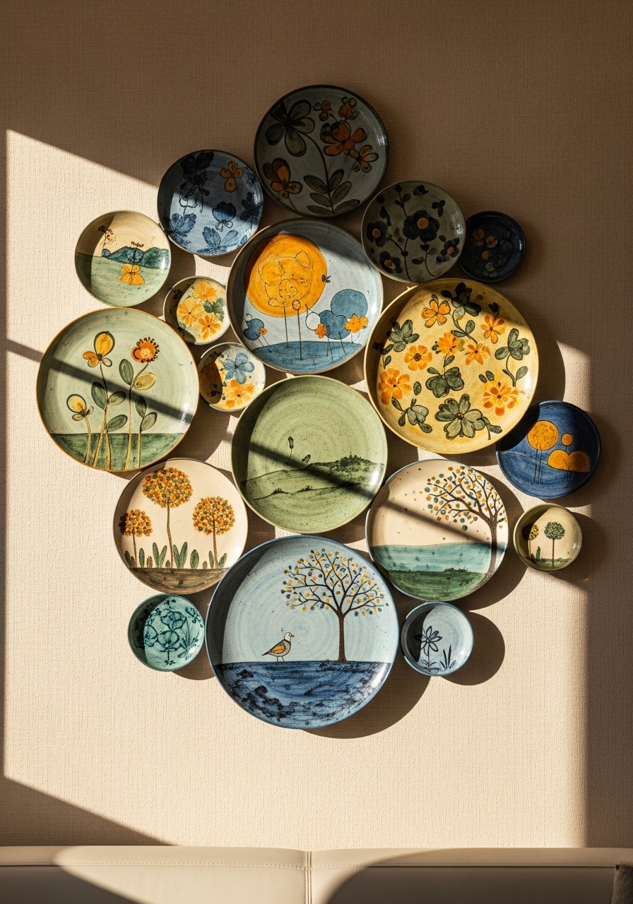 I collected ceramic plates at flea markets and grouped them on a wall. The mix of glazes reads like travel souvenirs. For convenience, I ordered decorative ceramic plate set ($48) to fill gaps. Styling tip: Vary plate sizes and keep an invisible central axis. Mistake to avoid: Using similar colors only — include one contrasting plate to anchor the group.