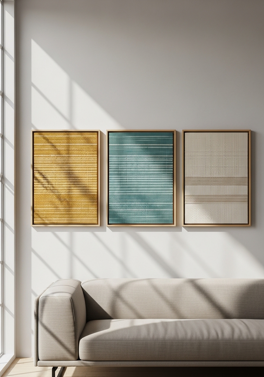 I stretched bold fabric into frames and created a color statement with minimal cost. I used 24×36 frames and inserted mid-century-inspired fabric. I bought 24×36 poster frames ($34 each) and upholstery fabric samples. Styling tip: Repeat one accent color from the room for cohesion. Mistake to avoid: Using fabrics that clash with existing upholstery.
