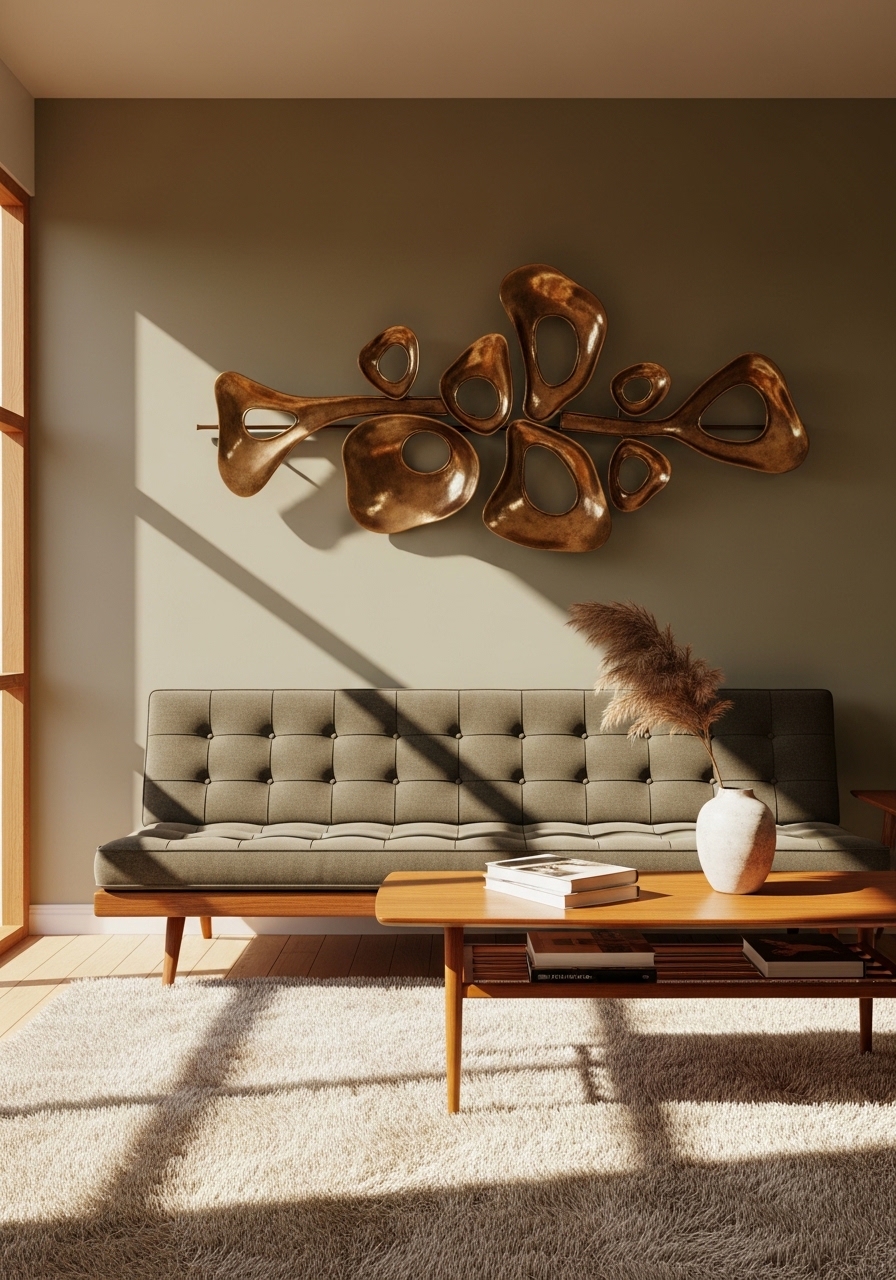 I hung a carved wood panel as a single-object focal point. The organic lines create calm and focus. I sourced large carved wood wall panel ($129). Styling tip: Let a single object breathe; avoid competing pieces nearby. Mistake to avoid: Choosing a panel too busy for a small sofa — scale is key.