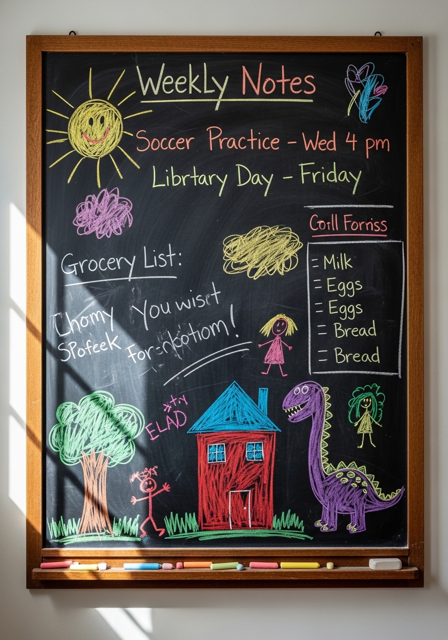 I installed a framed chalkboard and it became the family command center. We jot notes and rotate kids’ drawings. I used framed chalkboard panel ($39) and cork board strips. Styling tip: Frame functional pieces to read as decor. Mistake to avoid: Making it the only focal point in the room — balance with art.