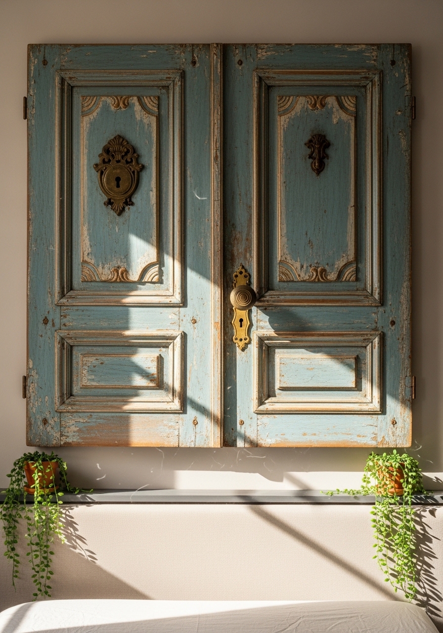 I mounted an antique door above a sofa for a collected look. It added history and texture. I found one at a flea market and sealed it. For convenience, use reclaimed door wall art ($179). Styling tip: Keep surrounding decor simple to let the piece shine. Mistake to avoid: Choosing a door too heavy without proper wall anchors.