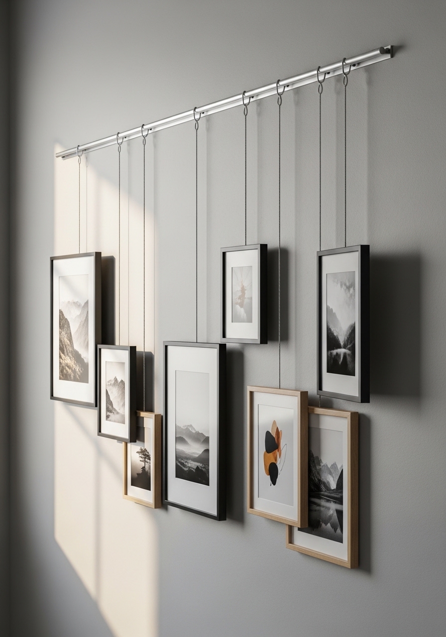 I installed a picture rail and swap art without drilling new holes. It’s ideal for renters who like to refresh. I used picture rail hanging kit ($32). Styling tip: Keep cords discreet and match hook finish to frames. Mistake to avoid: Hanging too many prints too close together — give each work space.