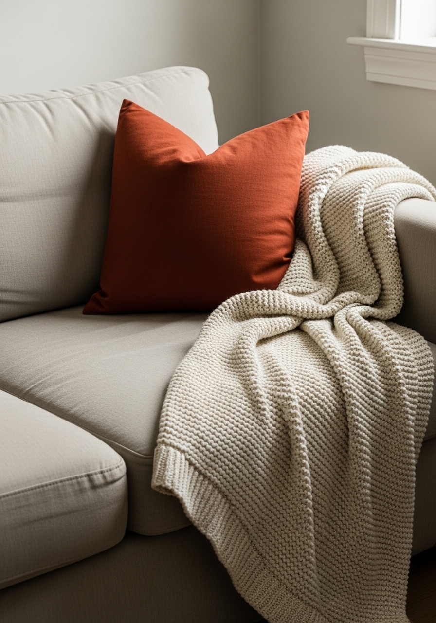 I layered a 50×60 cream knit throw and two 18×18 linen cushion covers. Texture adds depth without color noise. Styling tip: fold throws; don’t drape them messily. Mistake to avoid: using too many patterned pillows.