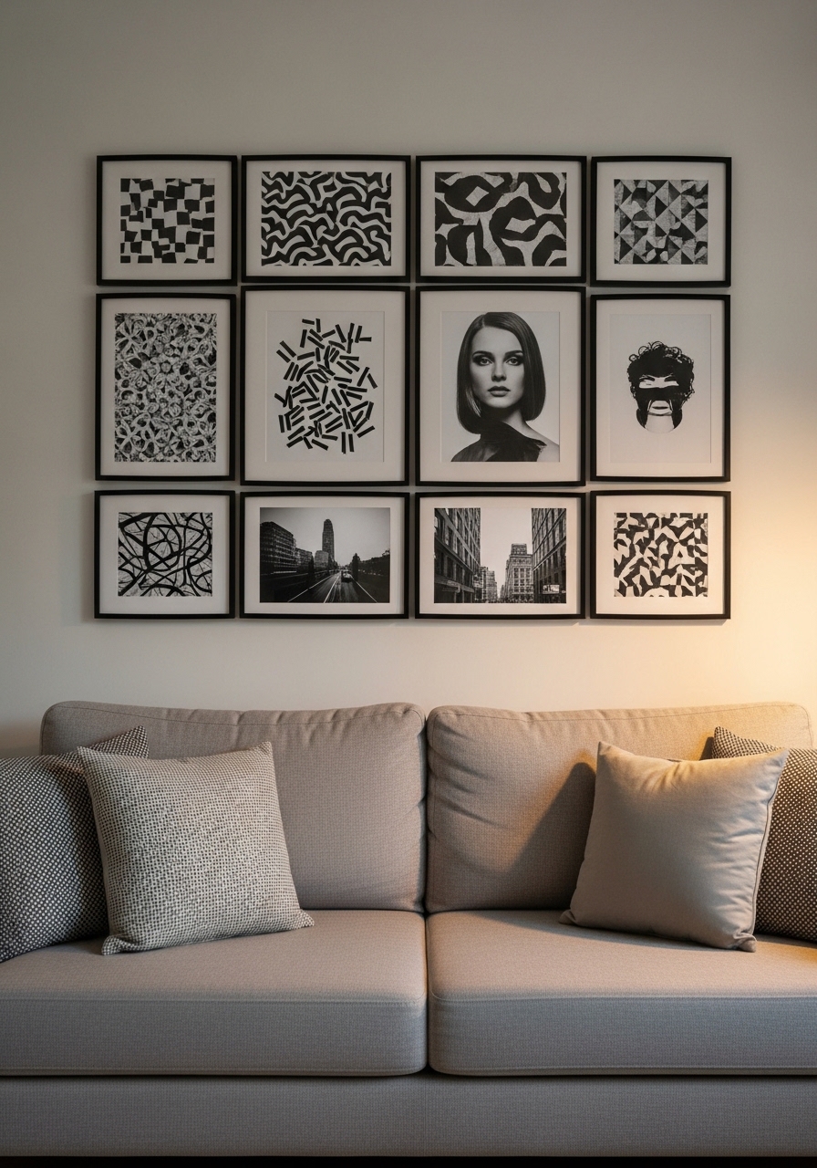 Monochrome Art Grid — Minimal Gallery Wall With Rhythm