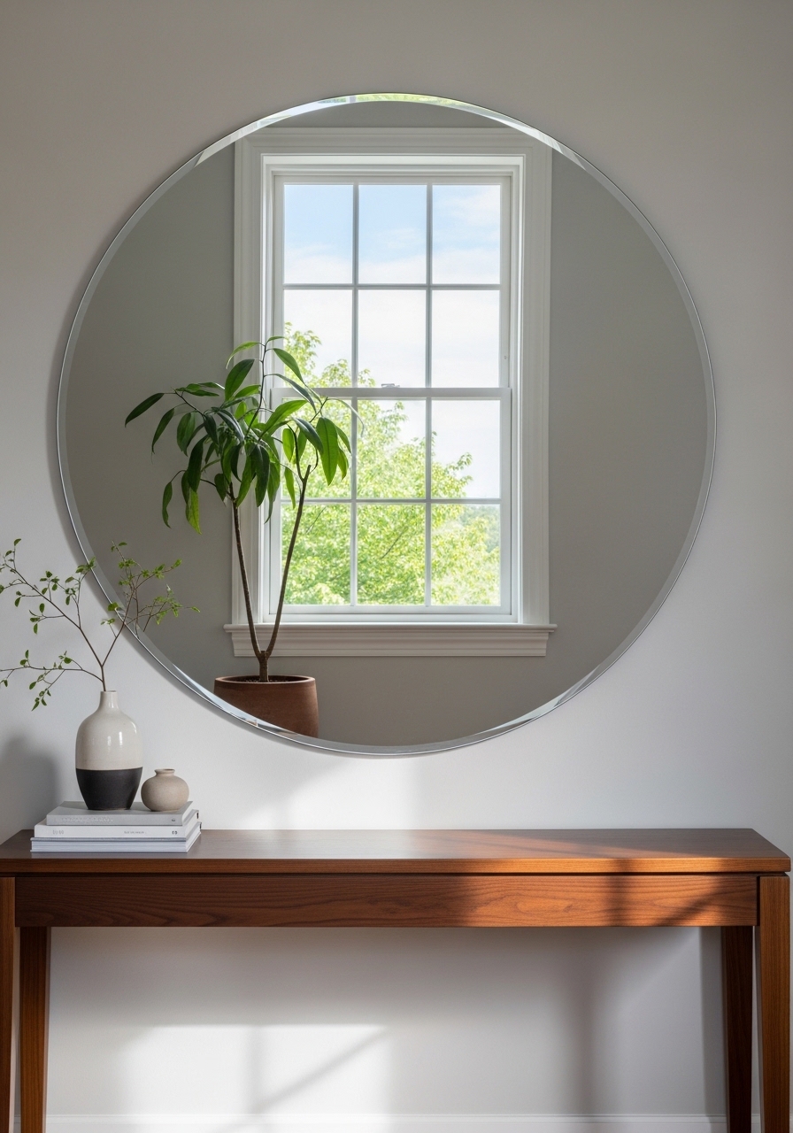 Large Round Mirror to Double Light — Minimal Reflective Hack