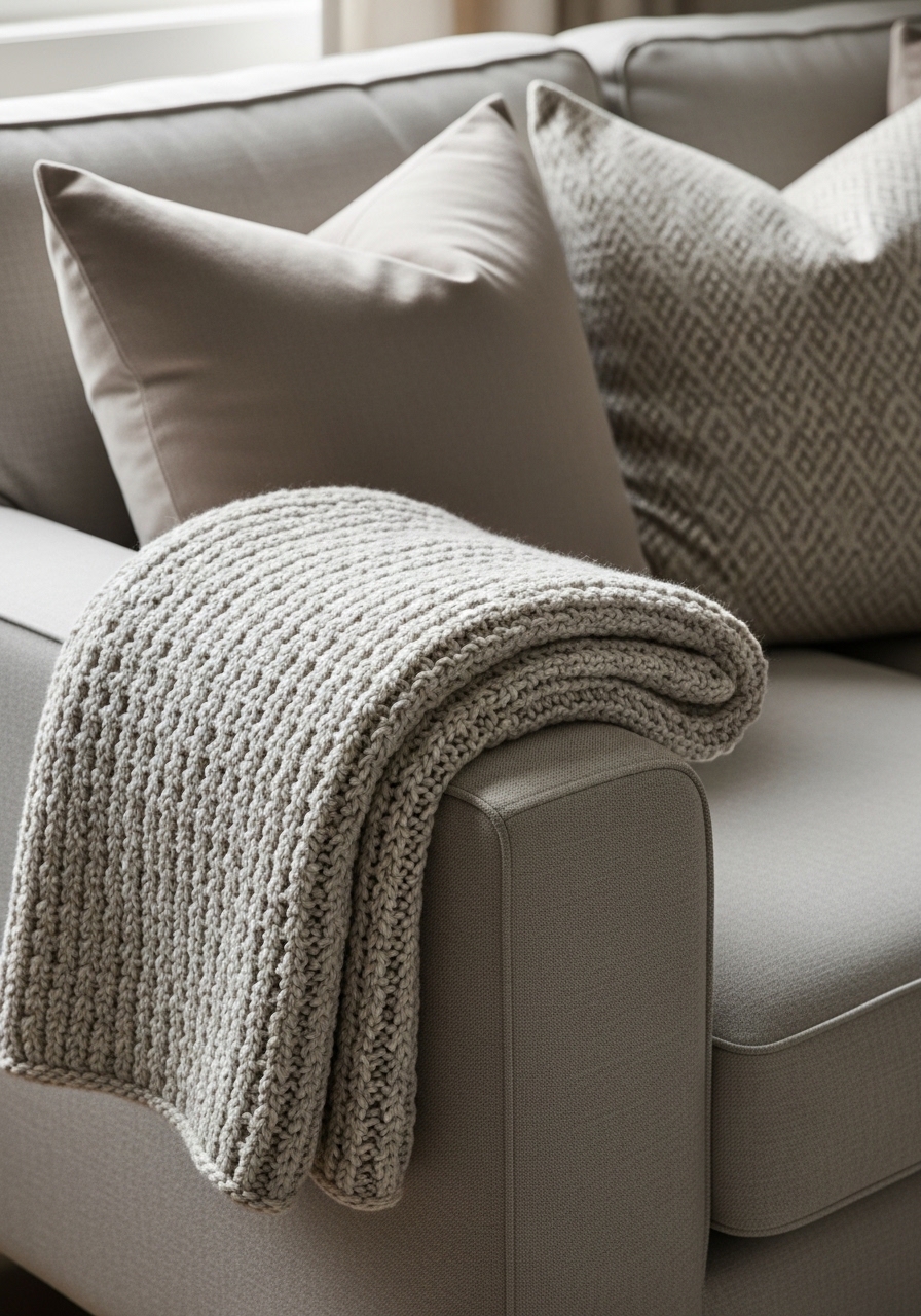 Textured Throws and Neutral Pillows — Minimal Comfort Layering