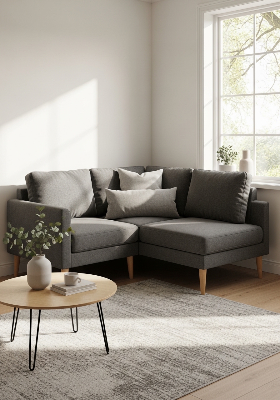 Small-Scale Sectional for Tight Corners — Minimal Modular Seating
