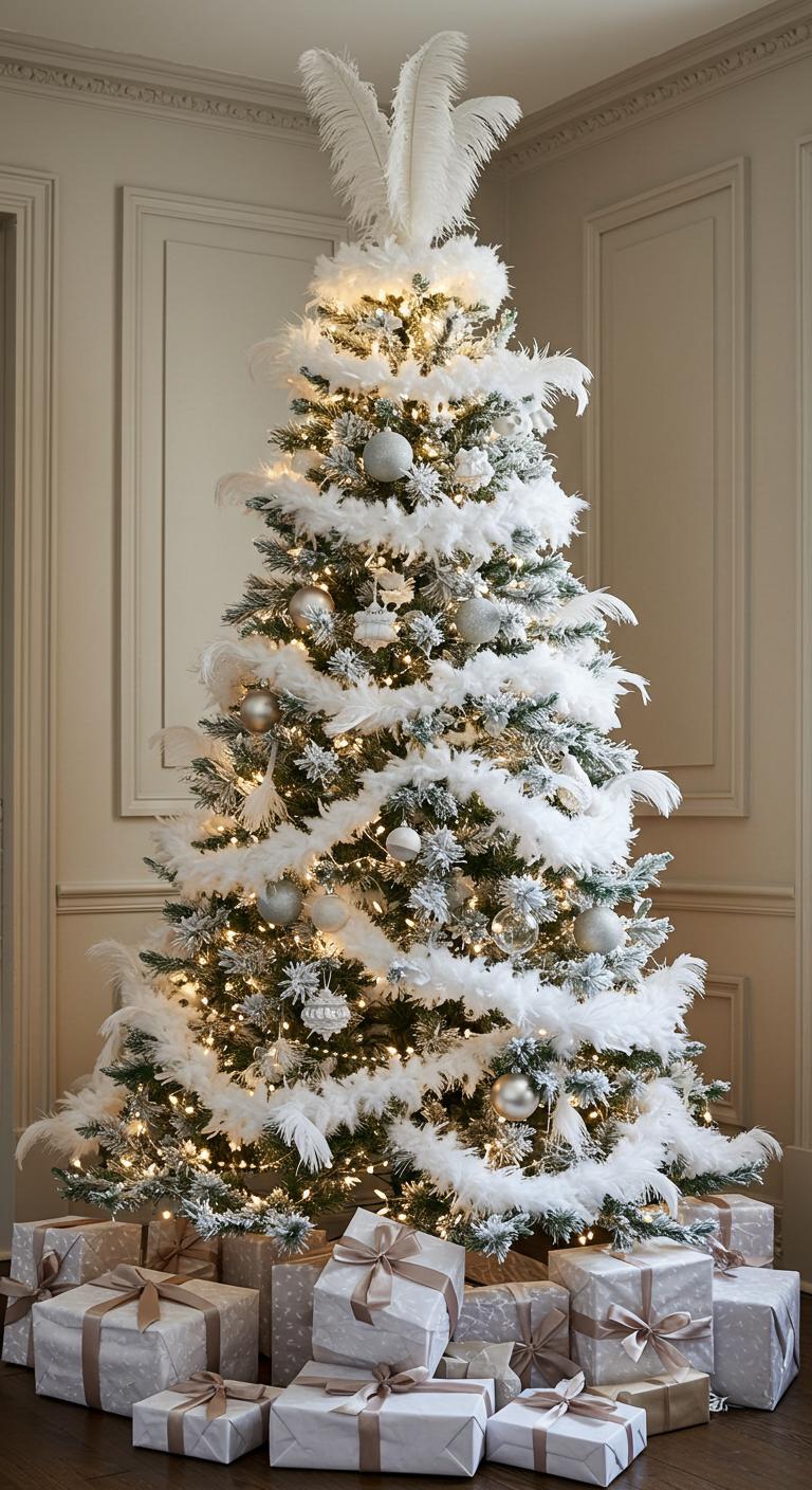 Picture delicate whimsical feather arrangements cascading down your tree, creating a dreamy visual. A feathered tree topper adds the perfect finishing flourish, inviting a sense of playfulness.