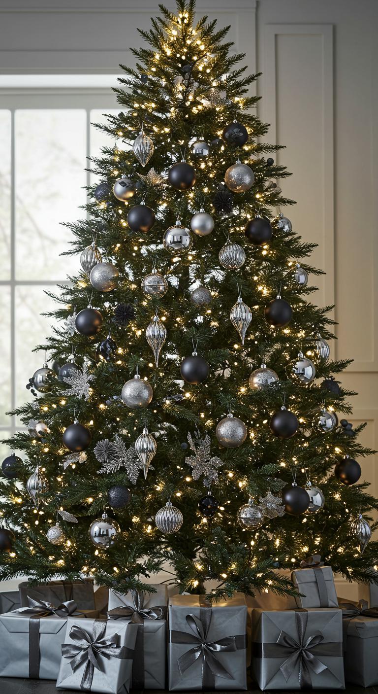 Imagine shimmering silver ornaments paired with deep charcoal matte accents. This combination creates a striking contrast, inviting freedom and sophistication into your space.
