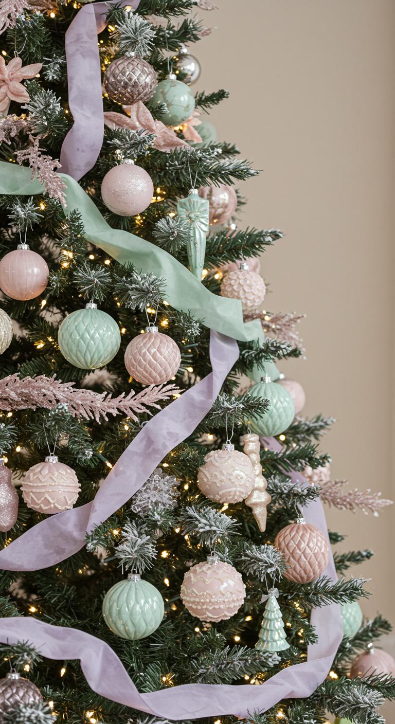Creating a beautiful Christmas tree with soft pastel accents on a neutral base instantly adds a sense of warmth and tranquility to your holiday decor.