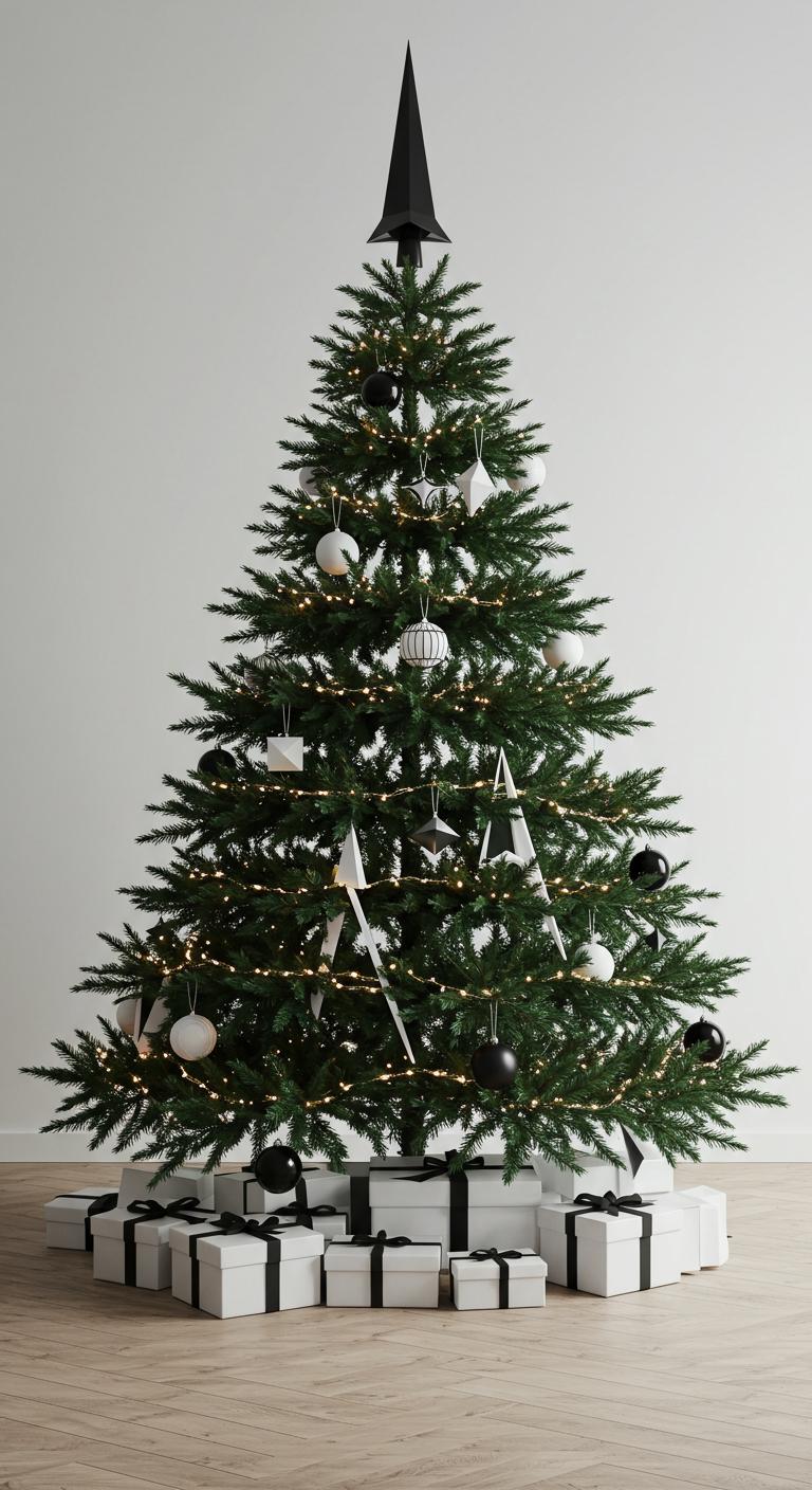 For those seeking a bold yet elegant holiday aesthetic, minimalist black and white contrast offers a striking solution.