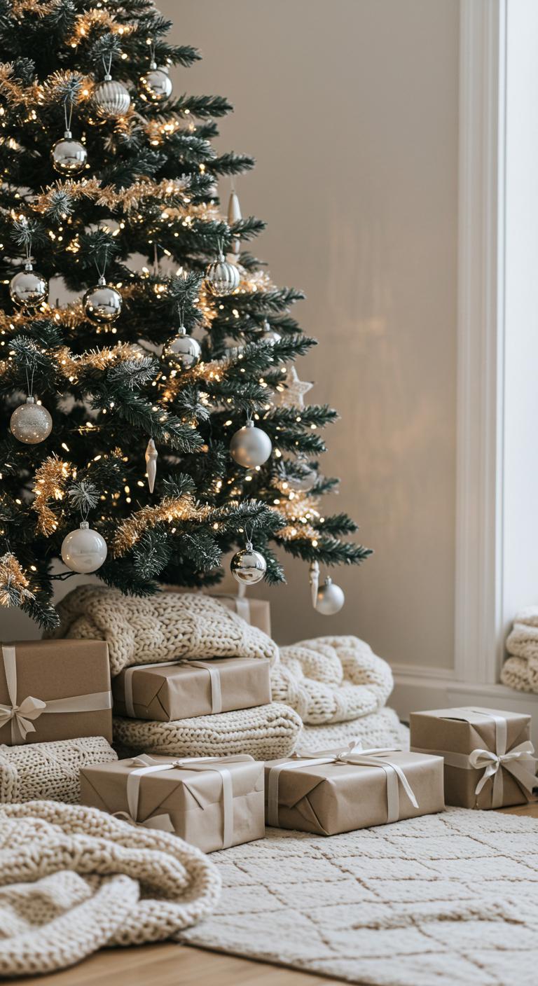 These elements not only evoke comfort but also embrace a minimalist aesthetic, allowing your tree to shine with effortless elegance.
