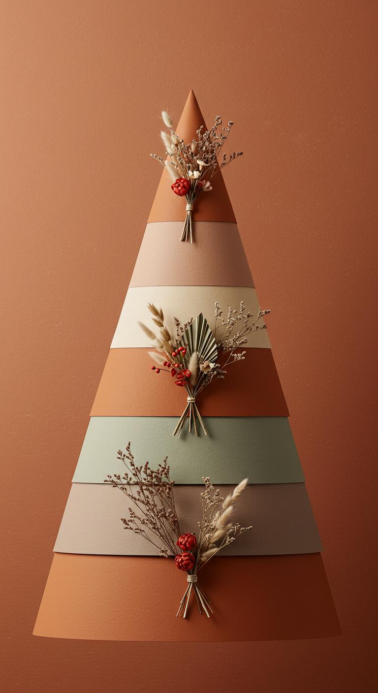 Five earthy tones paired with dried flowers can effortlessly elevate your minimalist Christmas tree design.