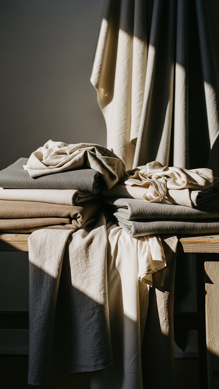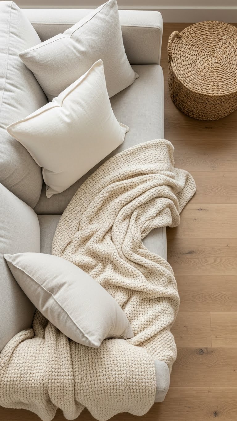 Fabrics like bouclé or velvet bring interest to plain walls. They add touch without mess. Grab affordable throws from discount shops. Try a DIY pillow cover from an old shirt. Place them on your couch for instant change. Break it down: start with one piece. Layer over existing furniture. This makes spaces feel richer. Save money by upcycling items you own. For example, sew simple edges on fabric scraps. Focus on how it feels under your hands. Make it personal with textures you love.