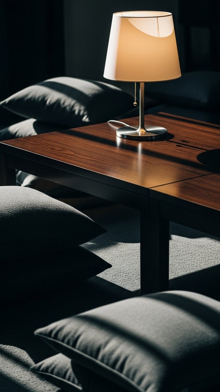 Dark tones with lights make spaces cozy. Add lamps to your setup. Shop for bulbs at discount stores. DIY shade: Cover with fabric scraps. Layer for even light. Focus on comfort in the evening.