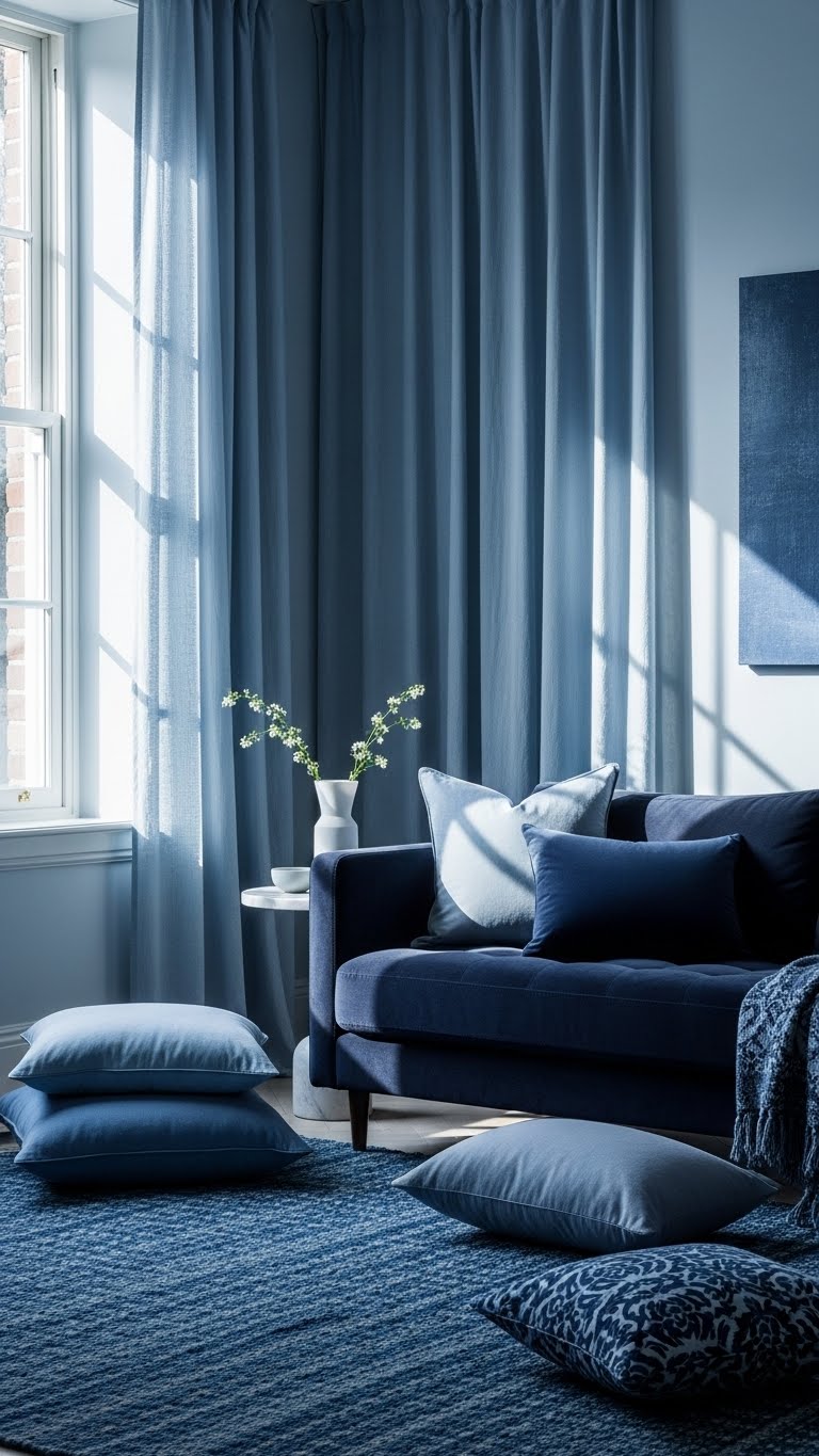 One color family with contrasts feels bold. Pick your shade. Use paint or fabrics cheaply. DIY mix: Layer textures. Keep it cohesive.