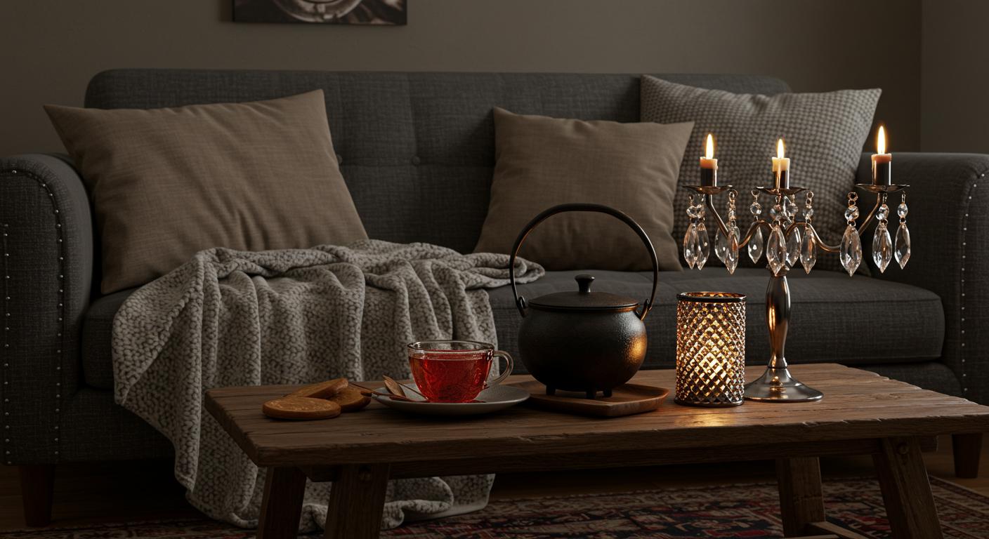 • Mix and Match: Combine cozy and witchy elements thoughtfully. A plush pillow with subtle gold embroidery of crescent moons can tie two themes together beautifully.