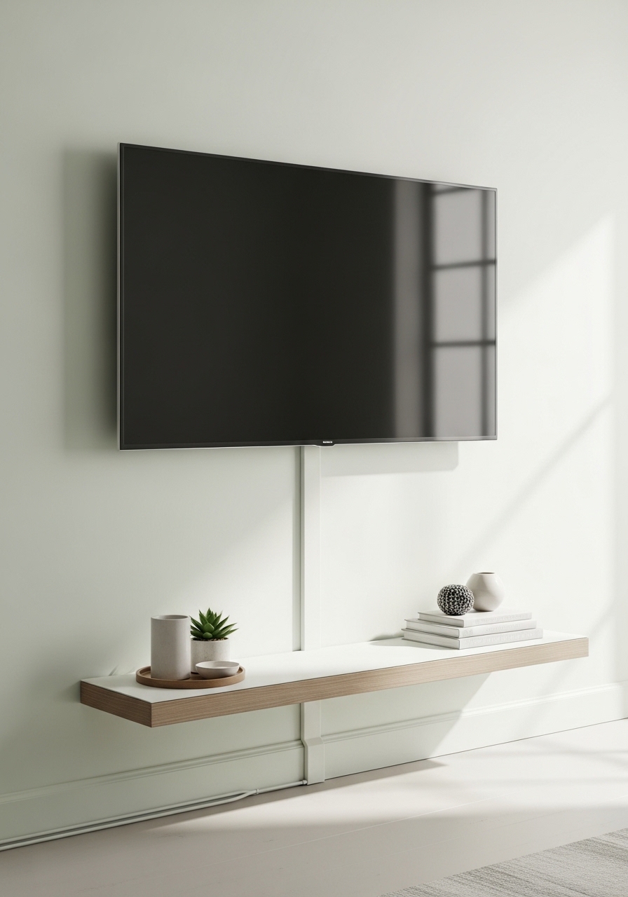 I hid TV cords with a cable concealer kit and painted it wall color. The whole setup looks built-in. Mistake: using a different color for the channel—match it so the line disappears.