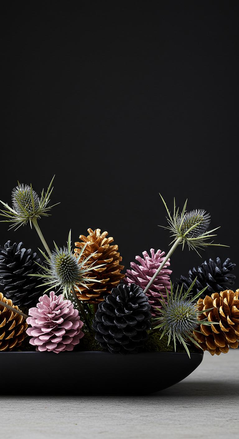 Want a holiday centerpiece that feels modern and a little mischievous? You’ll spray-paint pinecones in matte black, metallic gold, or unexpected pastels, using simple pinecone painting techniques to create texture and contrast.