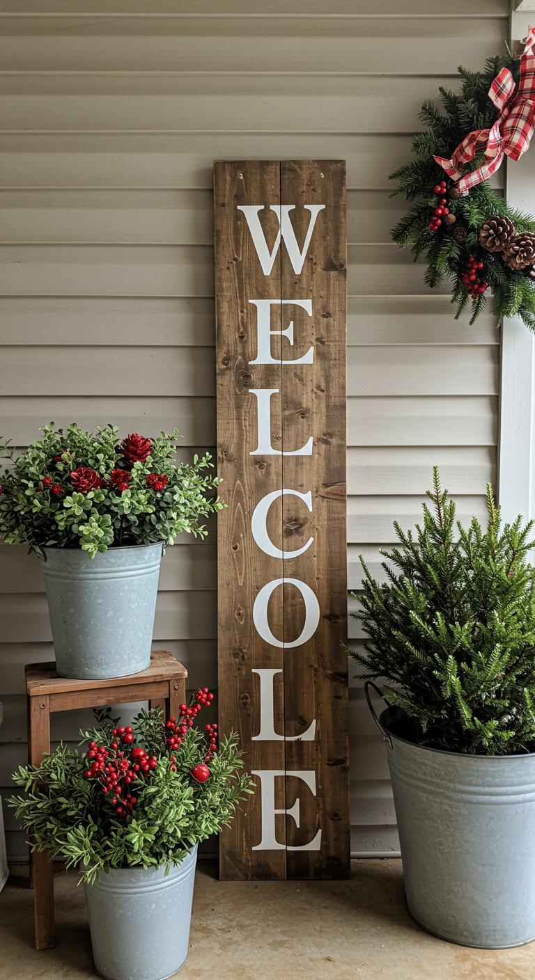 If you want to add instant warmth to your porch, a simple wooden welcome sign does the trick with timeless charm and minimal fuss.