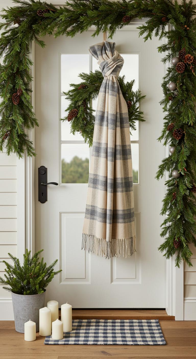 Swap the bowl for a soft, neutral plaid door scarf to carry texture and pattern straight onto your entryway.