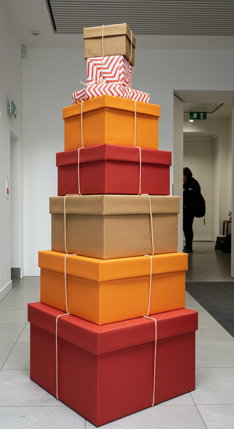 You’ll layer boxes using creative gift wrapping techniques — textured papers, natural twine, stable bases — to craft modern holiday sculpture ideas.