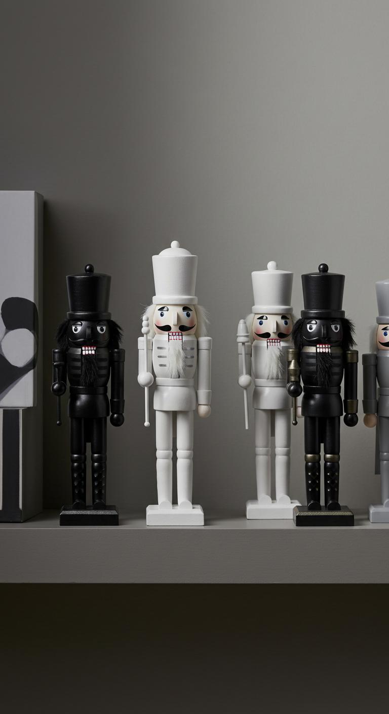 When you swap the traditional bright uniforms for a single hue, nutcracker figurines gain a modern, gallery-ready presence that suits contemporary porches and mantels.
