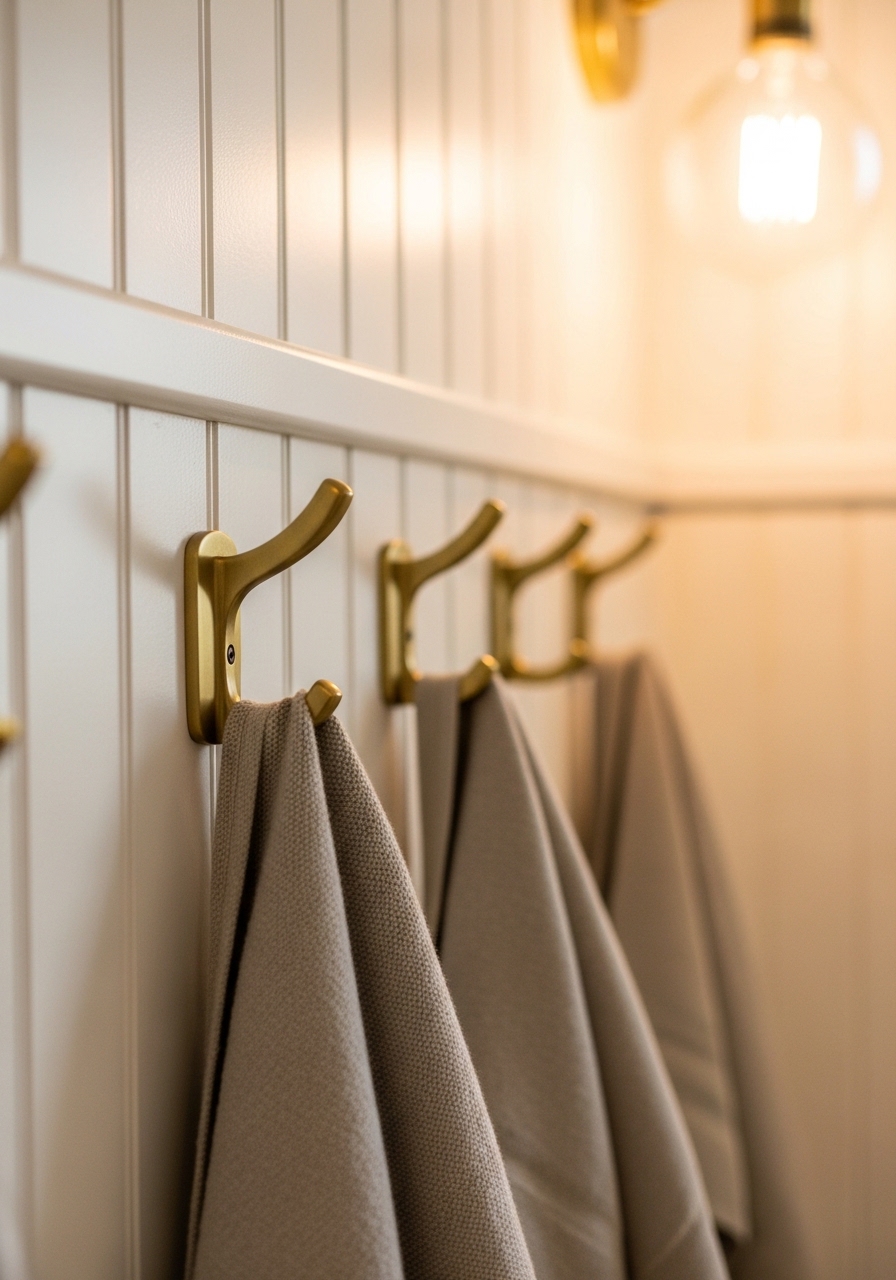Swapping to brass hardware on cabinets and towel bars adds a warm, modern farmhouse gleam. I did this on a whim, and it pulled my neutral palette together beautifully. It’s affordable and makes everything look more polished, especially with some vintage-inspired pulls.