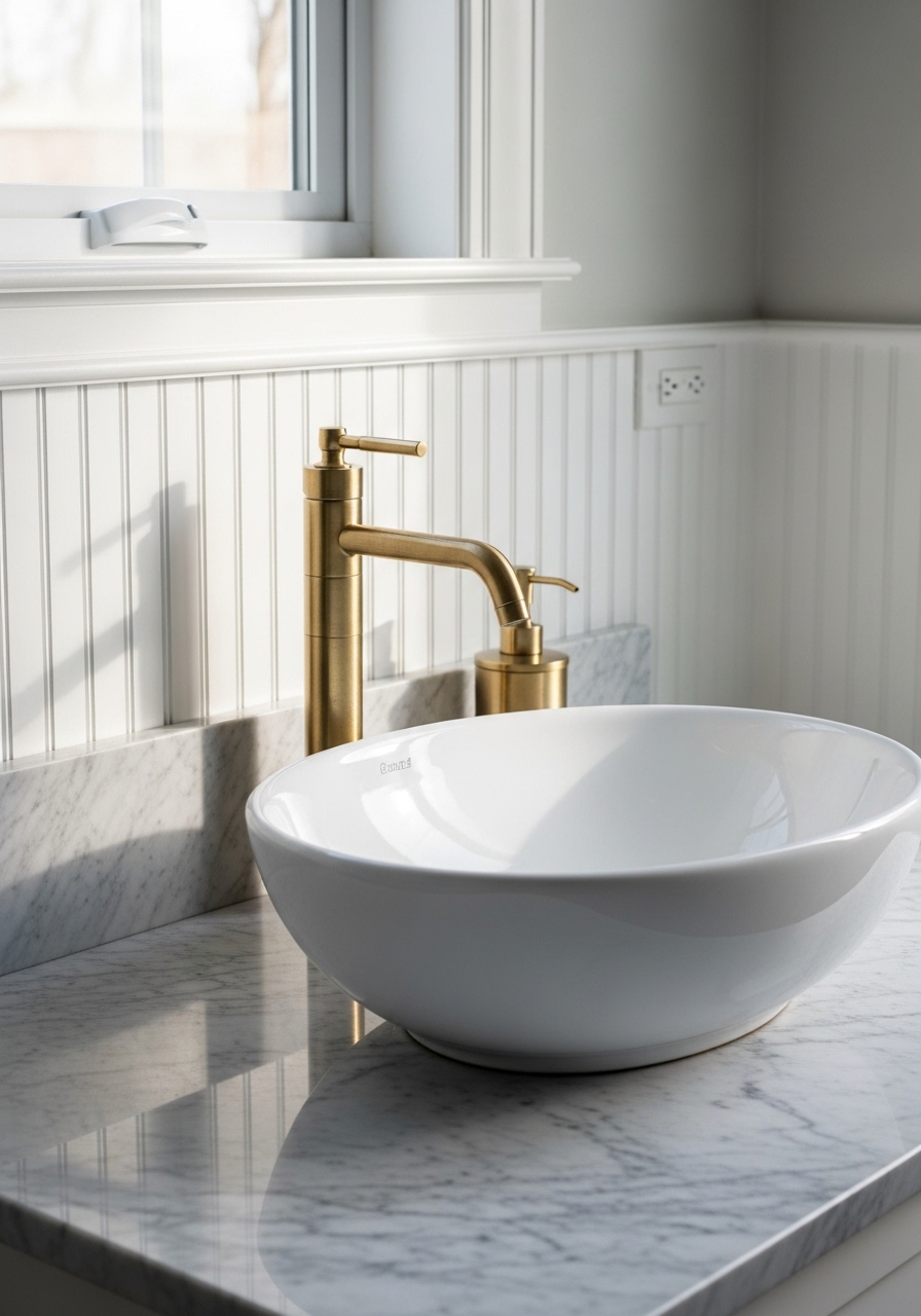 Installing beadboard as a backsplash protects walls while enhancing the farmhouse aesthetic. My kitchen has it, so I extended the look to the bath – unifies the house nicely. It’s easy to clean and adds subtle texture.
