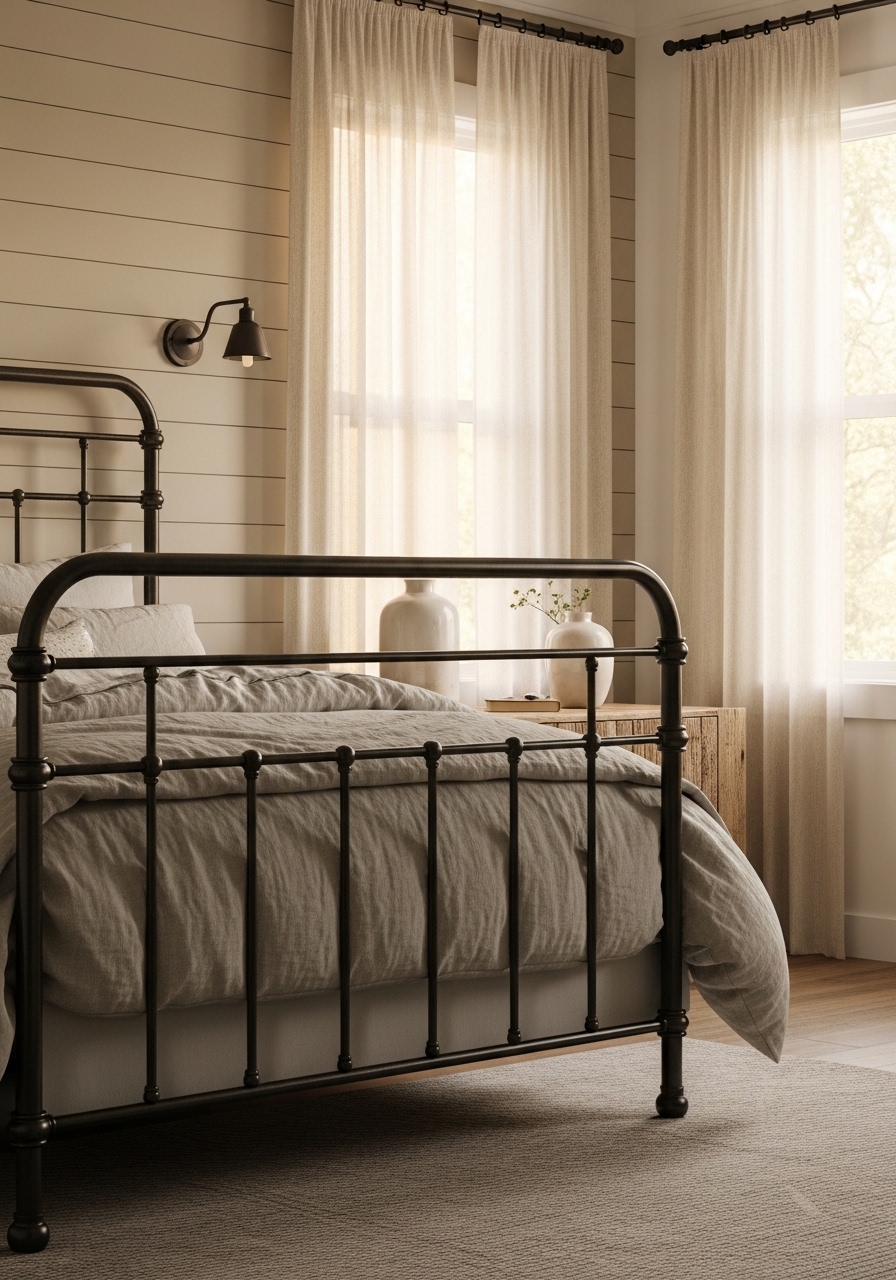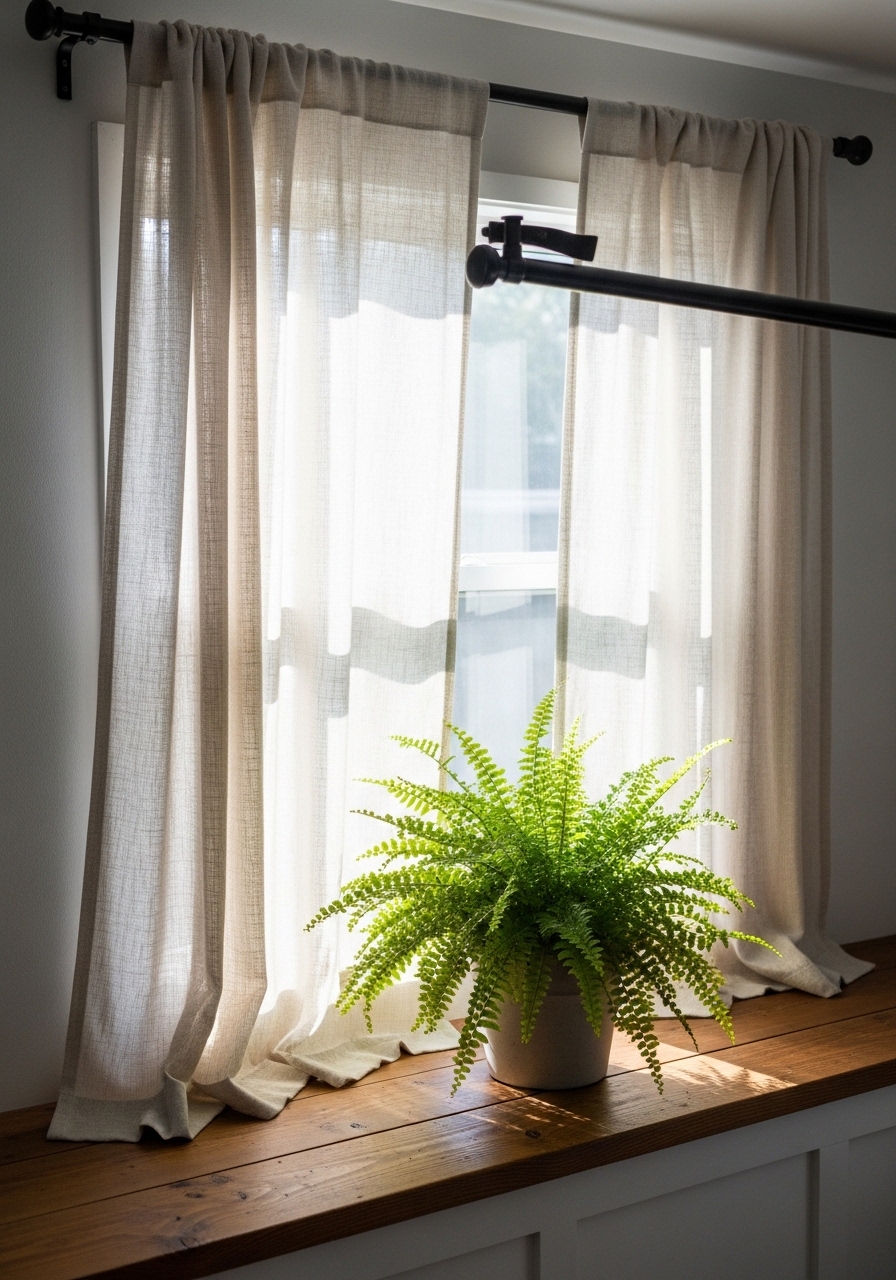 Update windows with DIY linen curtains from thrifted fabric for a soft, diffused light effect – I hemmed mine in an afternoon and it softened my entire room for pennies. Pairs perfectly with farmhouse frames. It’s like a mini facelift that changes the whole mood.