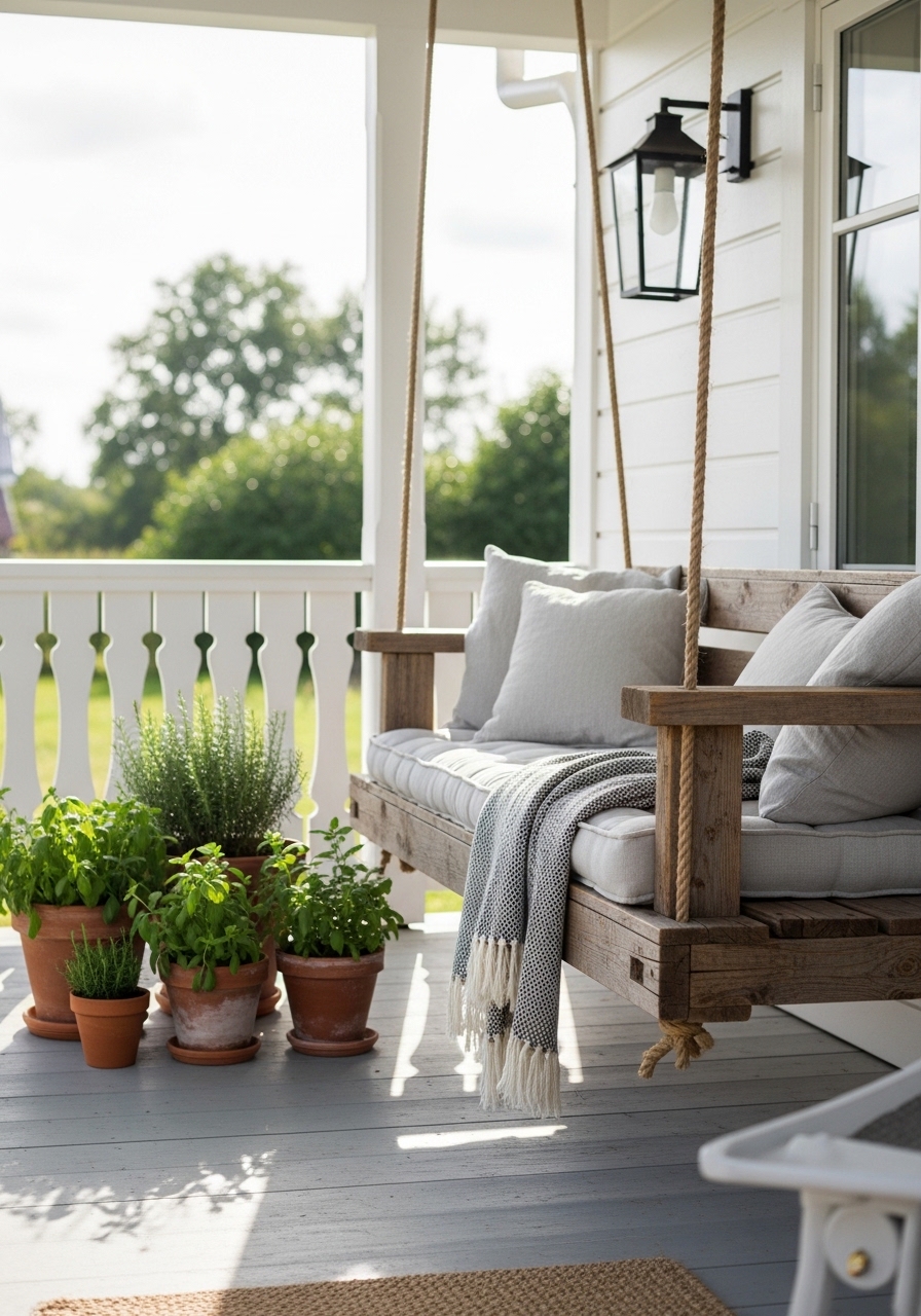 Create an outdoor porch swing using rope and salvaged wood for that ultimate farmhouse relaxation spot – I built one last spring for about $30, and it’s where I unwind with iced tea. Add some pillows from old fabrics. Neighbors always compliment it, and it’s surprisingly sturdy.