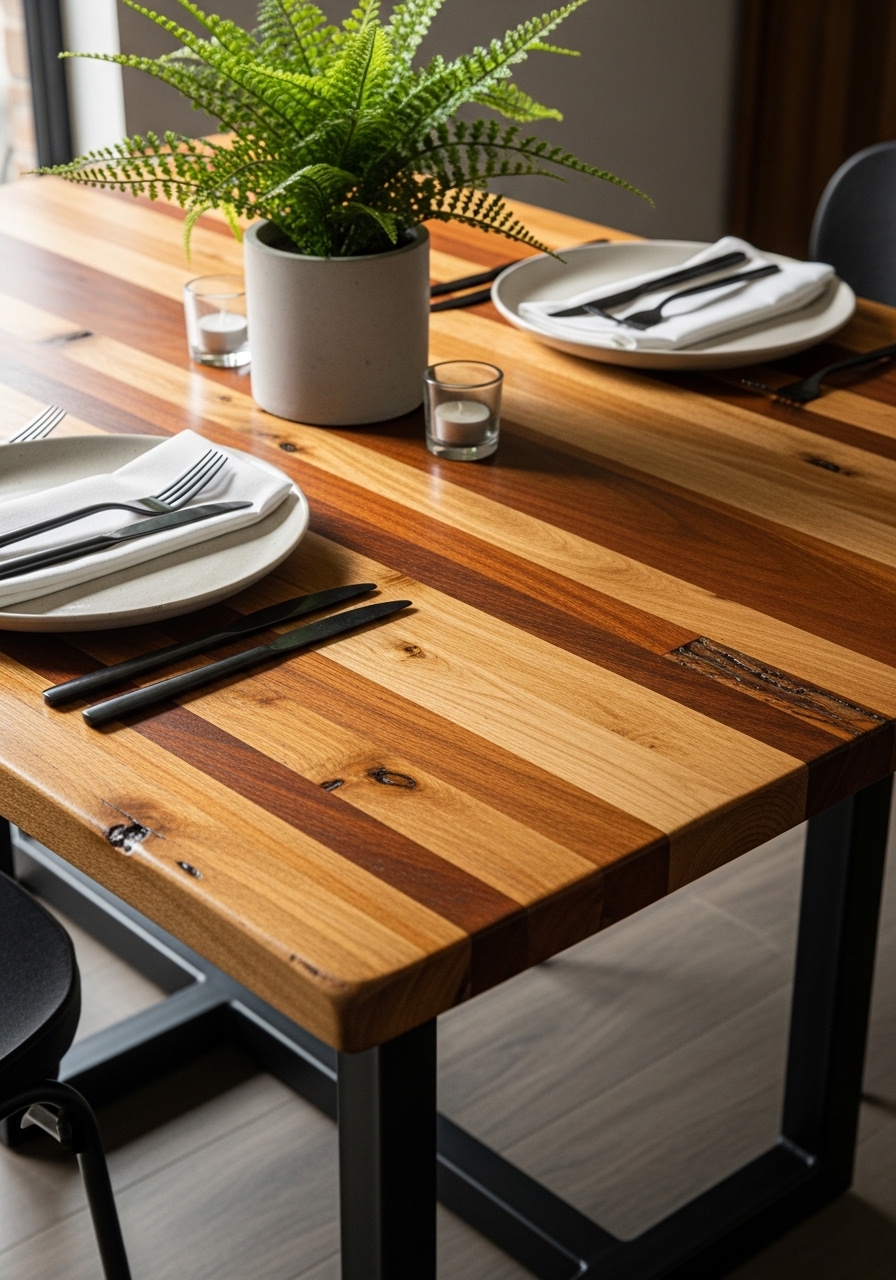 I found a 60-inch reclaimed wood table at a flea market and paired it with black metal legs for contrast. The result feels grounded and current. I used industrial metal dining chairs for $85 each and a 60×36 reclaimed wood table to match the scale of our patio. Styling tip: keep centerpieces low so people can see each other. Common mistake: choosing thin chairs that look delicate against a chunky table.