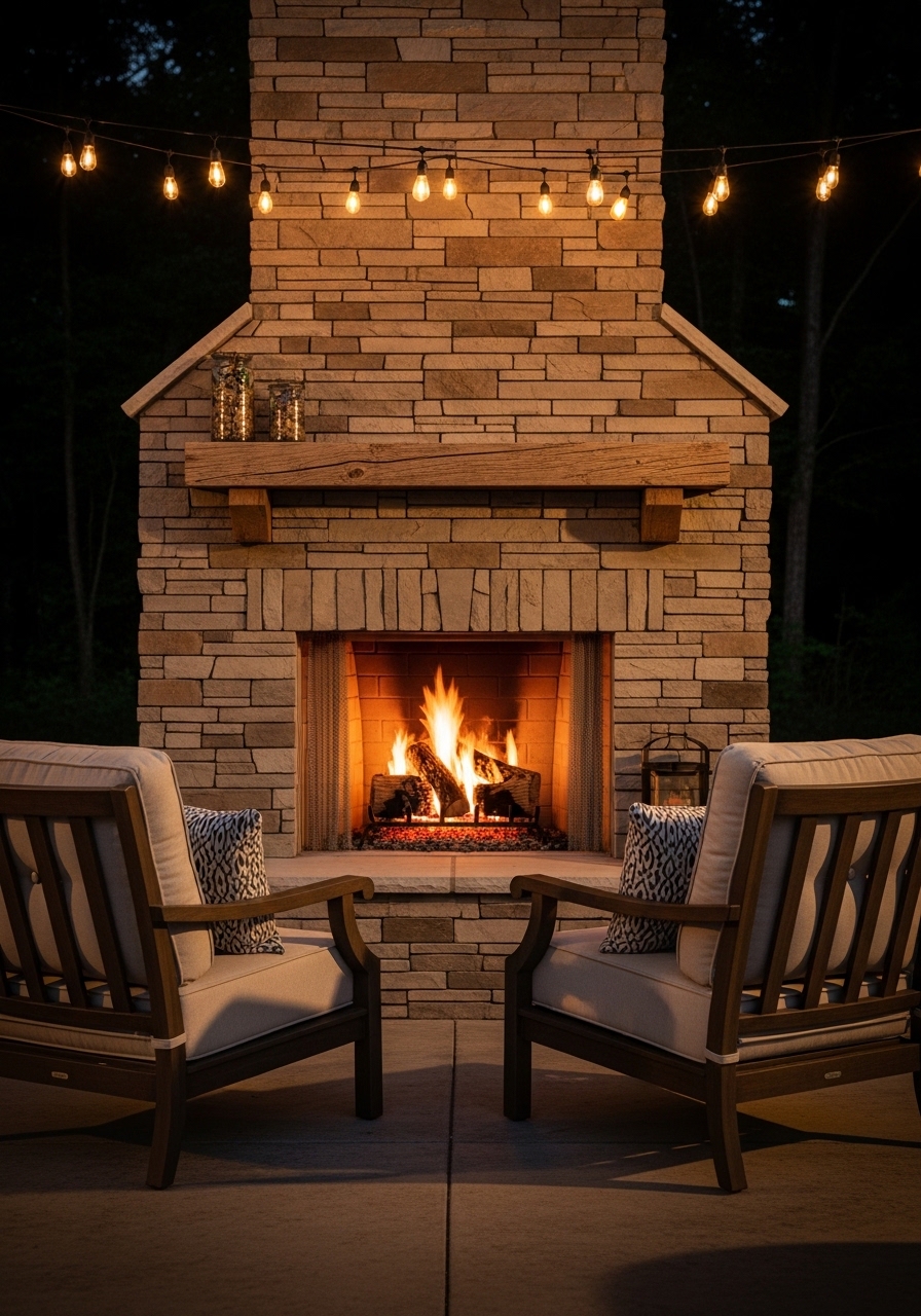 I added a faux stone veneer gas fireplace to create a focal point. It makes cool evenings feel like a mini living room. I sourced a portable gas fireplace and stone veneer panels for a DIY mantel look. Styling tip: keep seating in a semi-circle for conversation. Mistake: overlooking wind—position the fireplace where smoke won’t blow through seating.