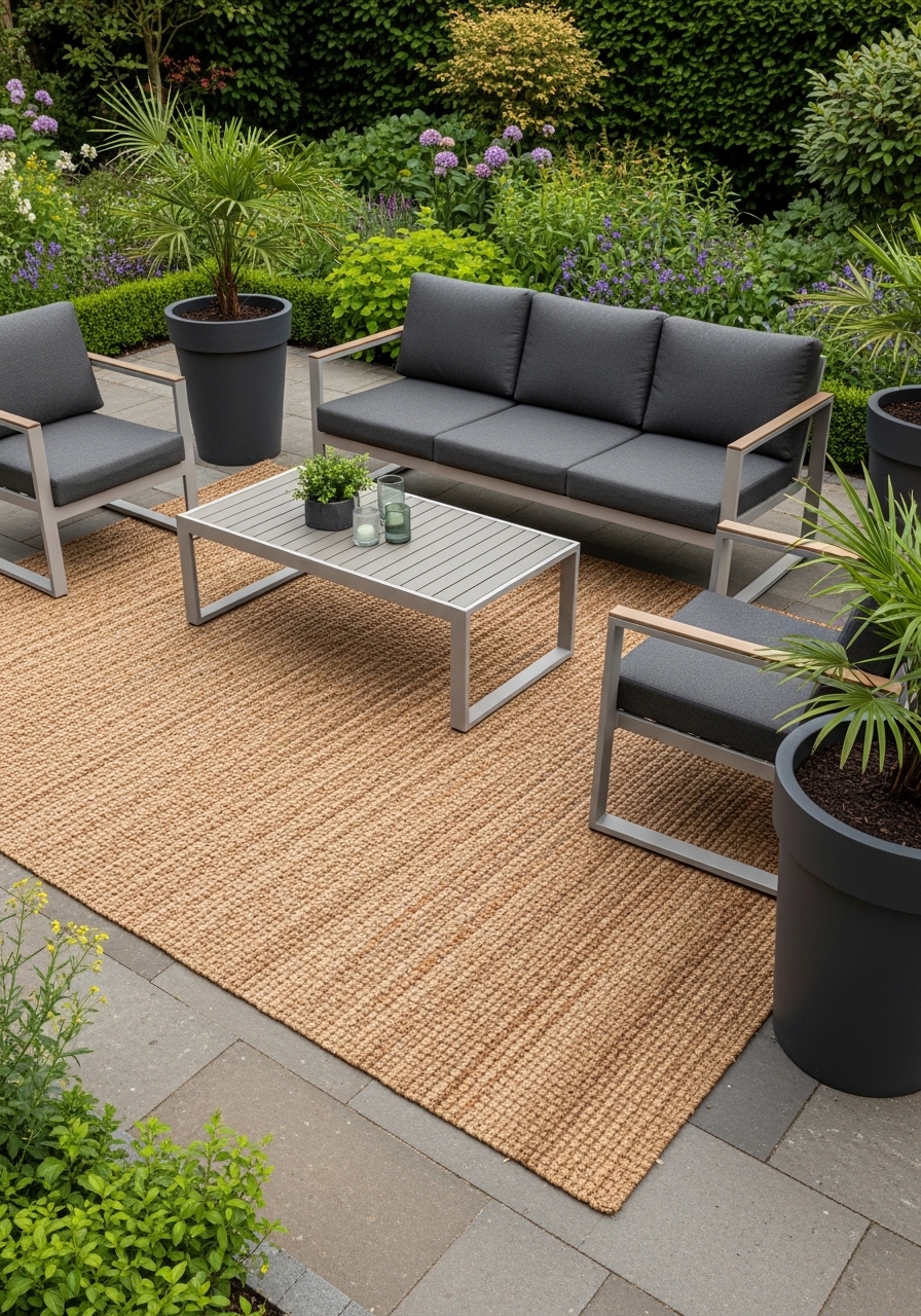 Measure first: Match rugs and furniture to space. A 5×7 works for small patios. See 5×7 outdoor rug.