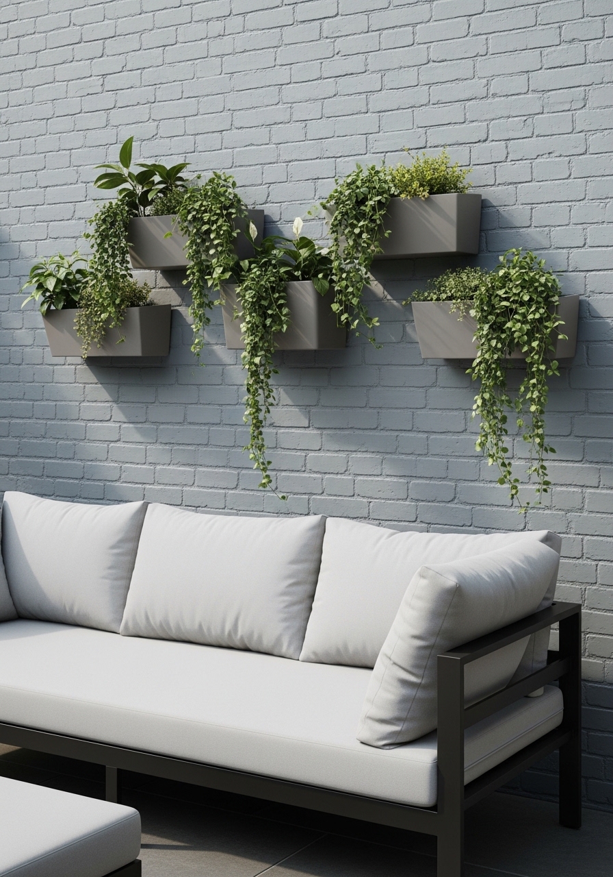 I painted my old red brick a soft Benjamin Moore Gray Owl. It brightened the patio and keeps the rustic texture. For renters, peel-and-stick brick wallpaper is an option. Styling tip: let planters rest against the wall for depth. Mistake: going too bright white on brick—it can look cold on a small patio.