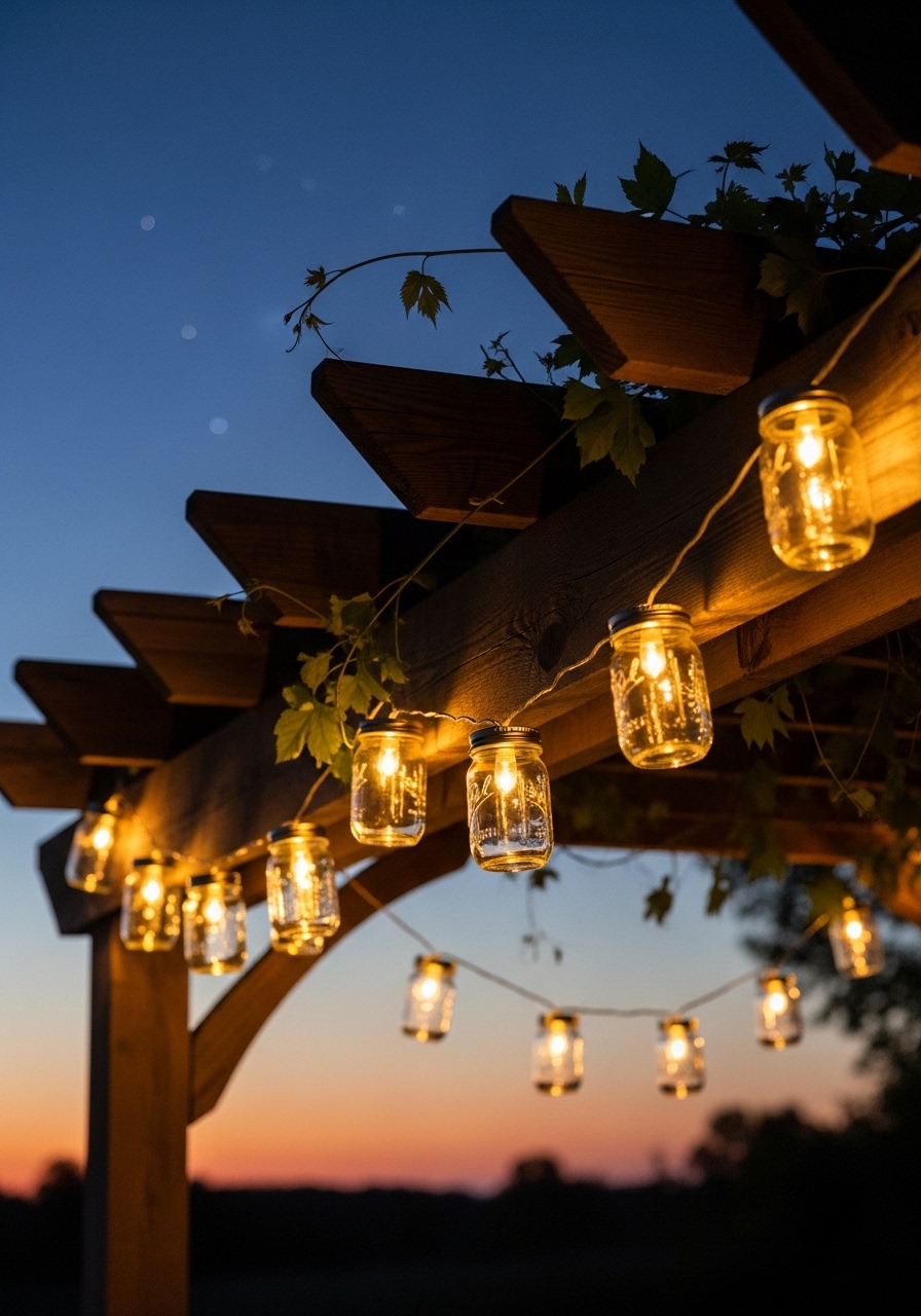 For a small budget I hung mason jar string lights. They add a casual, nostalgic feel. I used mason jar string lights 24 ft and battery-operated LED tealights. Styling tip: drape loosely for a relaxed vibe. Mistake: using indoor bulbs—they overheat and look harsh.