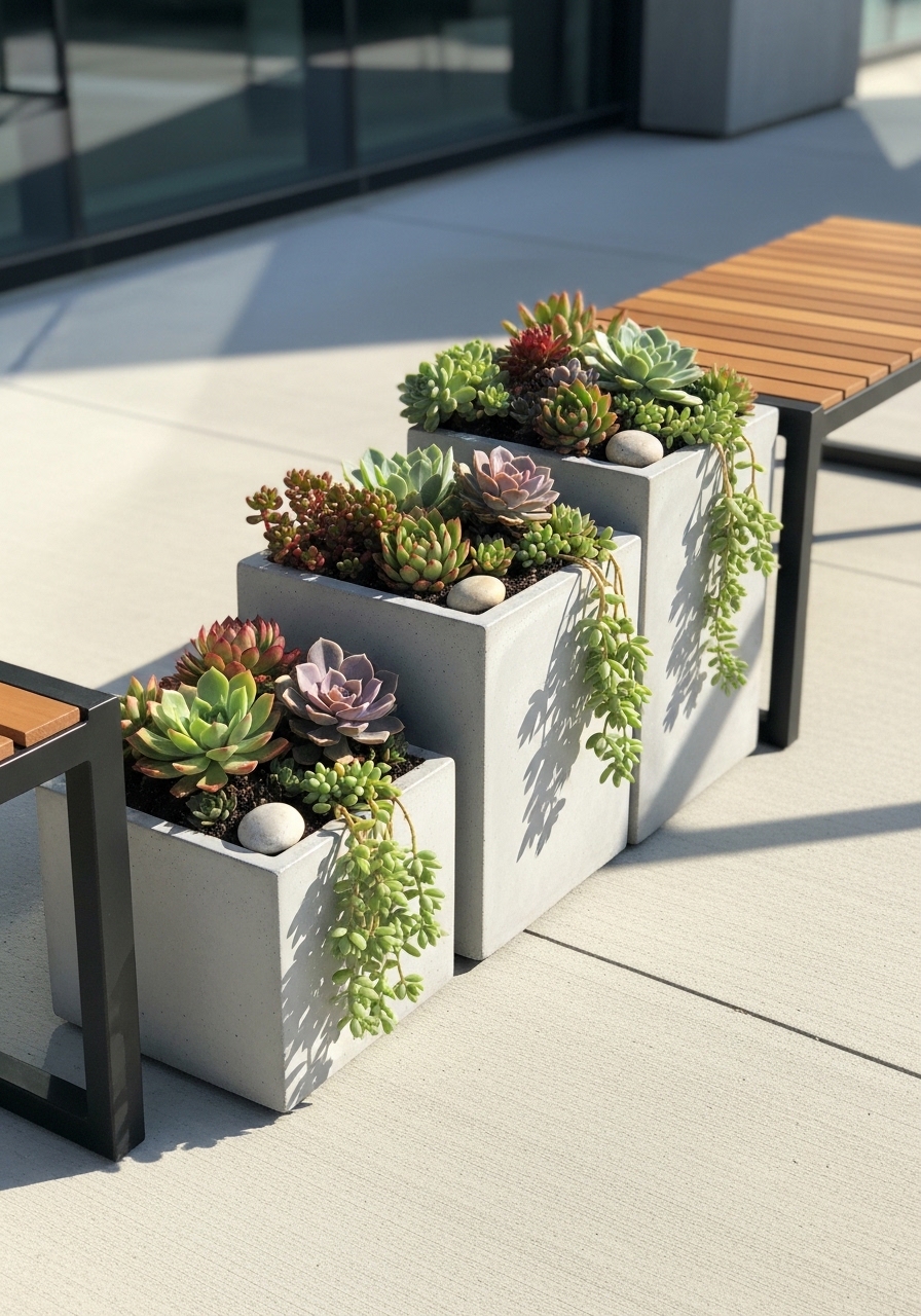 I use square concrete planters to add weight and modern contrast. They pair well with weathered wood. I bought 18-inch concrete planters. Styling tip: balance rough concrete with softer textiles. Mistake: too many concrete items—they make the space cold; offset with warm wood.