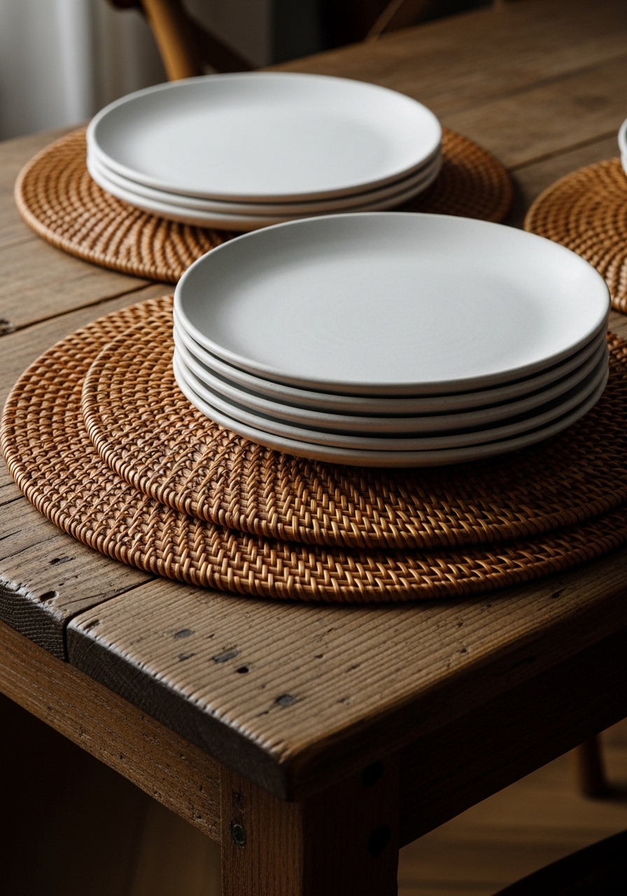 I use creamy stoneware and woven rattan placemats for al fresco meals. They look curated and are easy to replace. I use stoneware dinner plates 10 inch and rattan placemats 15 inch. Styling tip: keep napkins a soft neutral and add a small herb sprig for charm. Mistake: mixing too many patterns in tableware—keep the table calm.