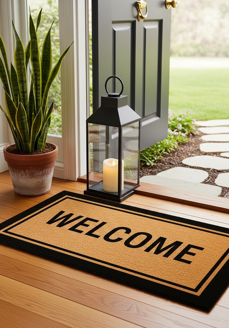 I added a coir welcome mat with simple lettering and a lantern. Small details set the tone. I use a coir welcome mat 24×36 and outdoor lantern 12 inch. Styling tip: keep one statement accessory near the door. Mistake: tiny mats that don’t fit the doorway—match proportion.