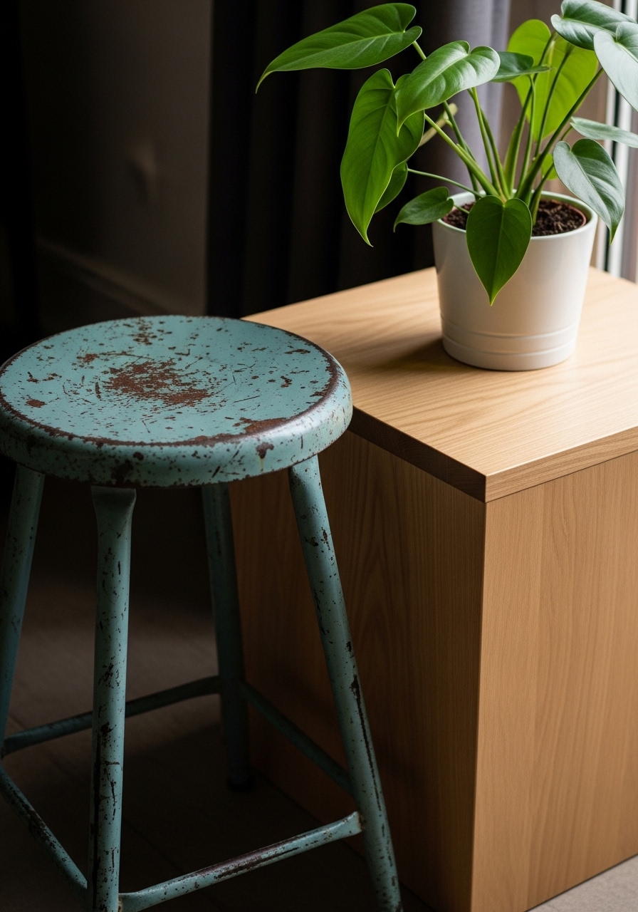 I like mixing a vintage enamel stool with a new wood side table. It reads collected, not staged. I picked a vintage metal stool and a cedar side table 18 inch. Styling tip: limit vintage pieces to one or two focal items. Mistake: filling the patio with mismatched smalls—it feels chaotic.