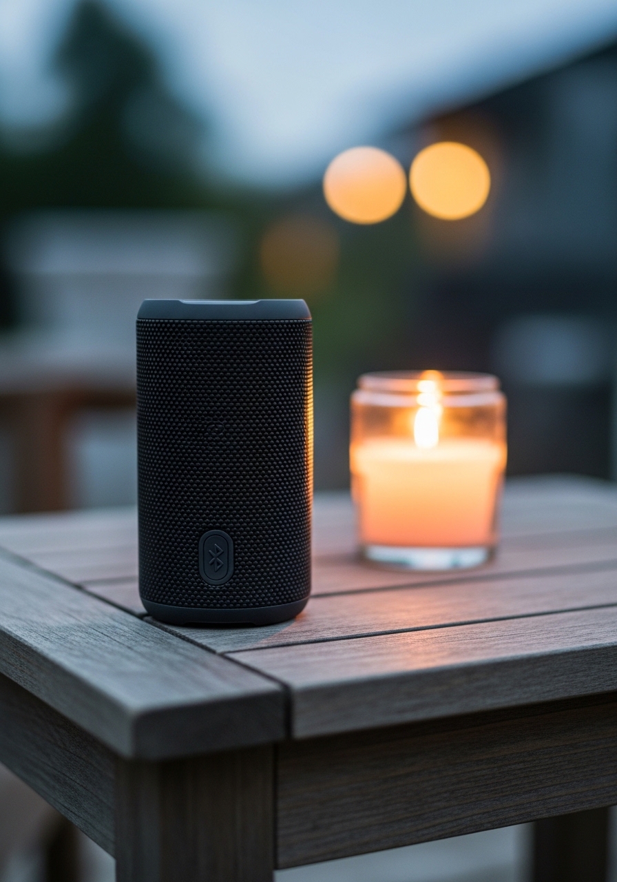I play low acoustic music from a weather-resistant Bluetooth speaker during dinners. It fills the space without dominating. I use a weatherproof Bluetooth speaker. Styling tip: keep volume low to encourage conversation. Mistake: placing the speaker directly on a wood table without a coaster—it causes vibration marks.