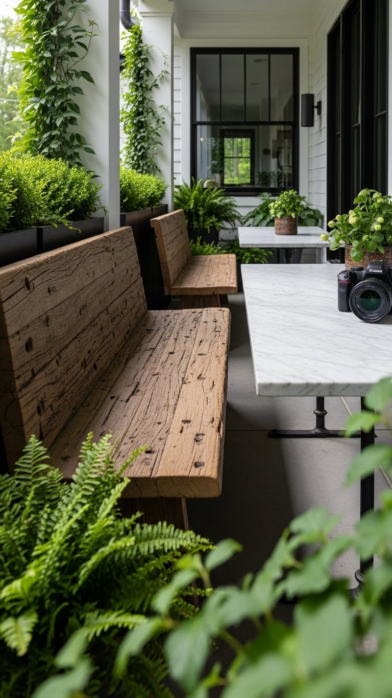 Grab reclaimed wood from old barns or thrift stores. Pair it with marble pieces from budget shops. This combo adds depth fast. Start small. Find a wooden stool for $20. Top it with a marble slab from a discount tile spot. Sand the wood edges for a smooth look. DIY tip: Use clear sealant on wood to fight weather. Add marble coasters as extras. Keep costs low at under $50. Focus on balance. One mix point works wonders. Try it on your bench. See how it ties the space.