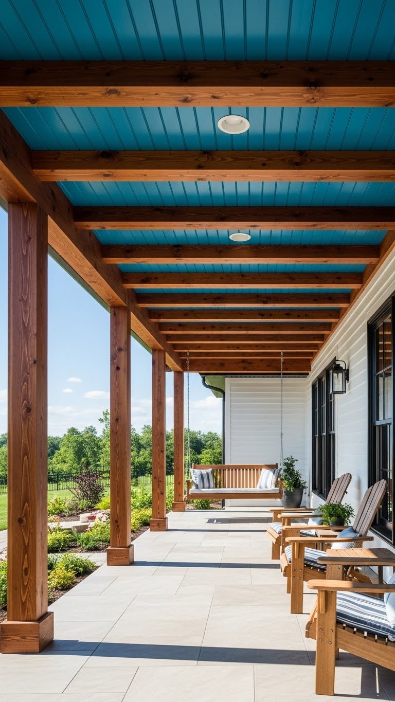 Buy haint blue paint in a small can for $15. Apply it to your ceiling. This classic touch stands out. Use a roller for even cover. DIY step: Prep with a quick clean. Let it dry overnight. Total: $20. It adds a cool feel. Place it above to draw eyes up.