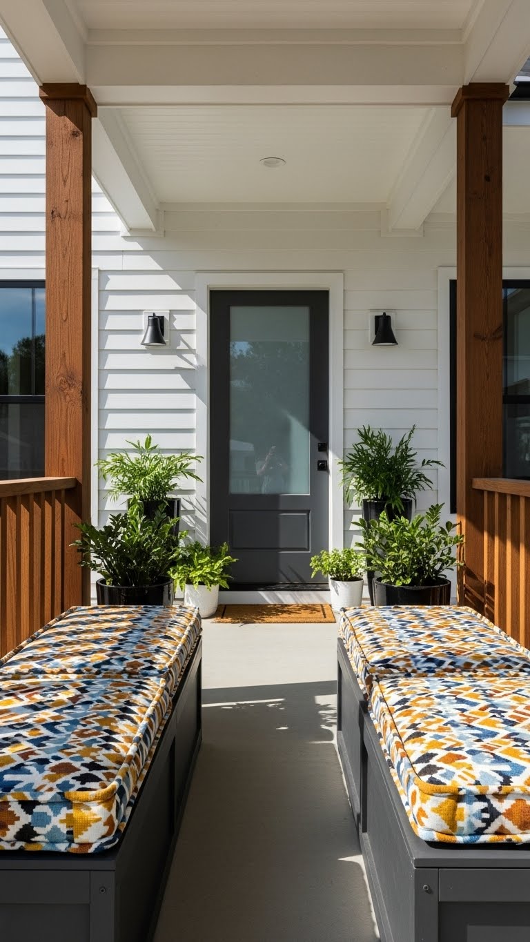 Buy cushions for $18. Mix colors on benches. This adds fun. Stack for variety. DIY tip: Sew covers from old cloth. Cost: $18.