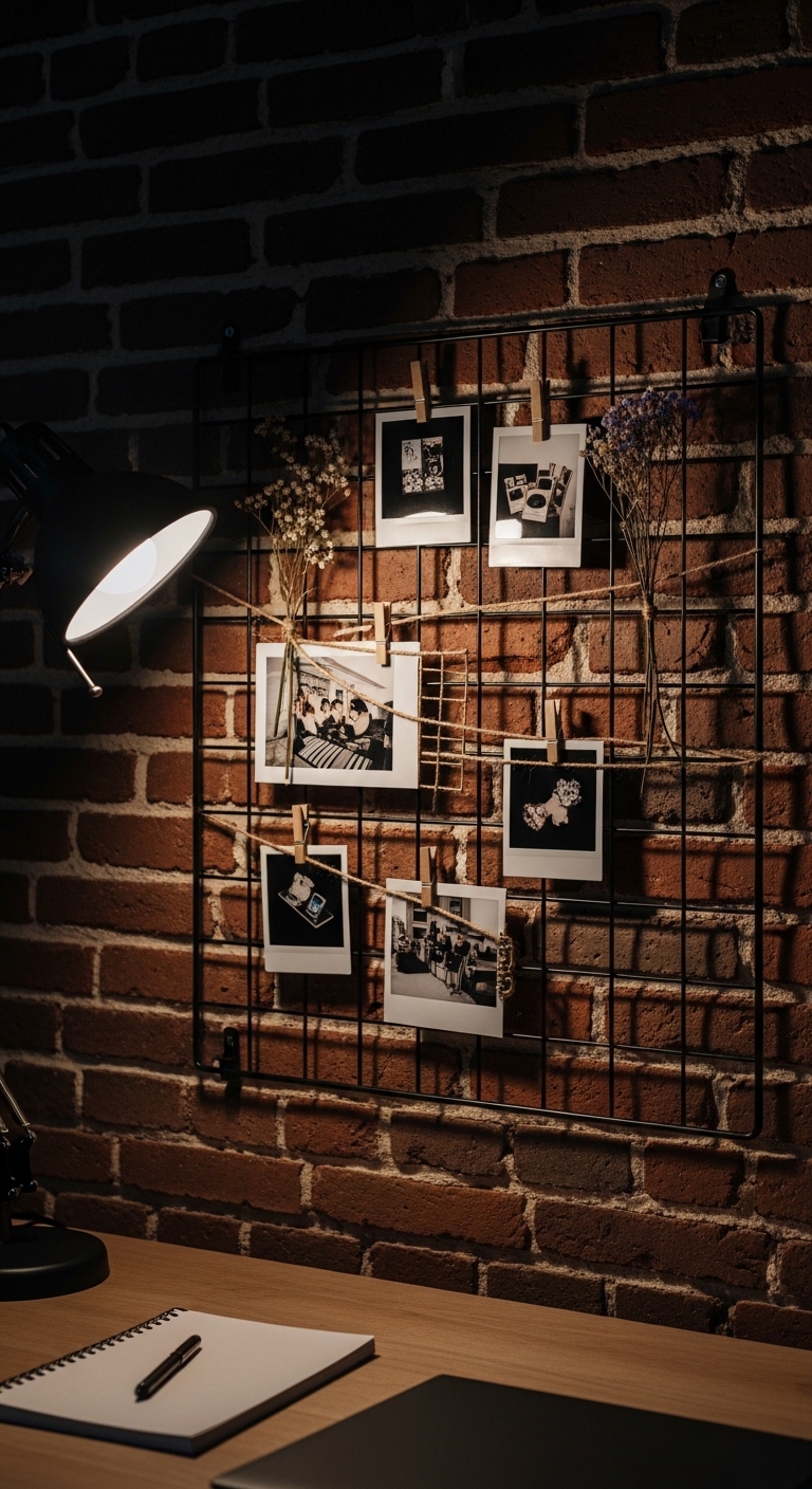 A wire grid lets you clip photos and notes for an ever-changing display. It’s industrial meets farmhouse, super versatile. Installed one above my desk, and it keeps my inspirations in view – though I did drop a few clips while hanging it, oops.