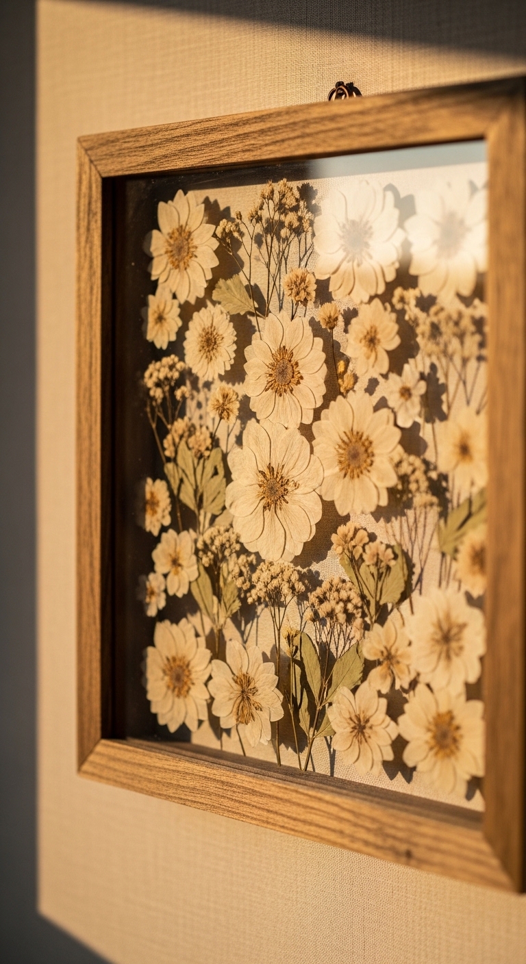 Framed art paired with a simple vase of flowers adds a fresh pop to any neutral wall. In my dining area, I did this and swapped the blooms seasonally – keeps it feeling alive. It’s low-commitment decor that ties everything together nicely.