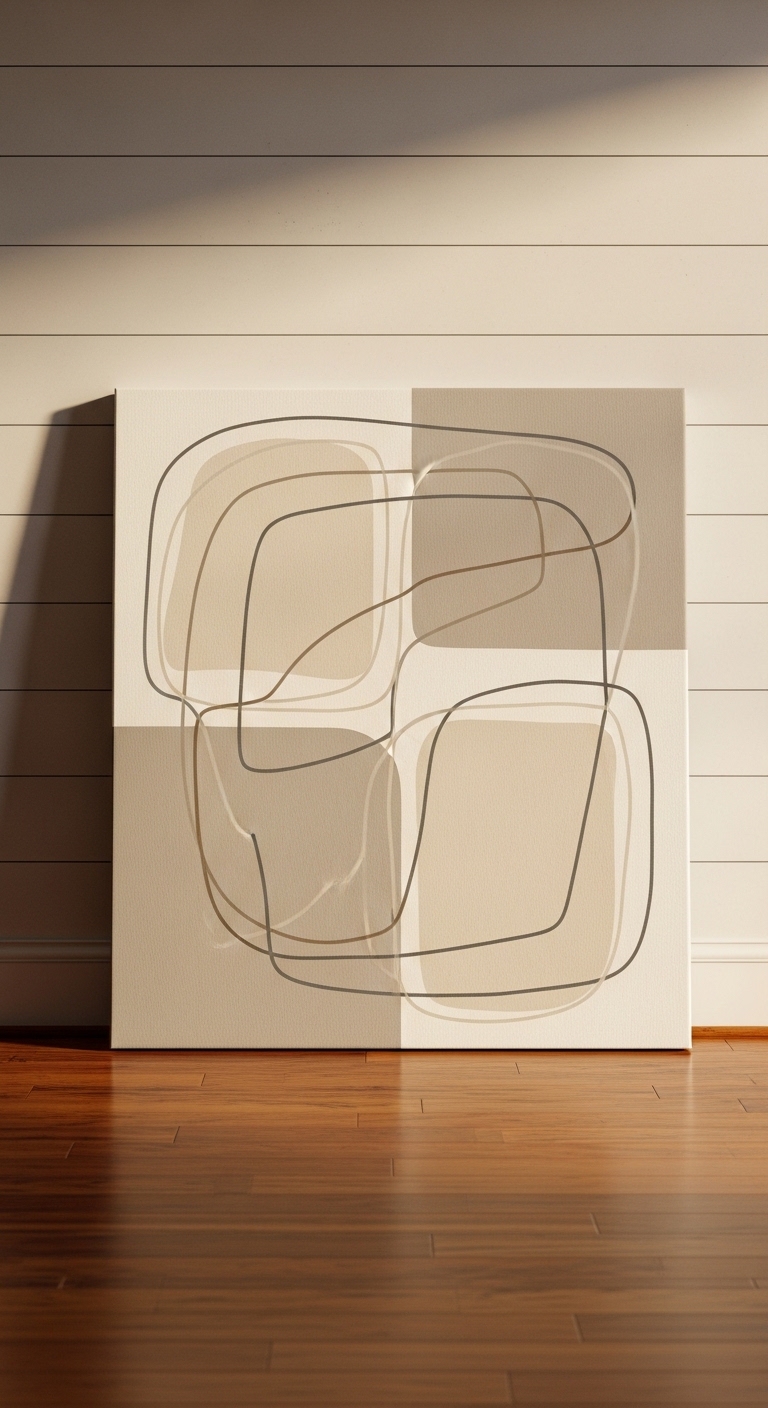 Abstract line art in neutrals brings a modern edge to farmhouse walls. I picked up a piece like this at a local market and propped it up in my bedroom – no hanging required, which was a relief for my rental. It adds sophistication without overwhelming the space, and you can DIY with simple sketches.