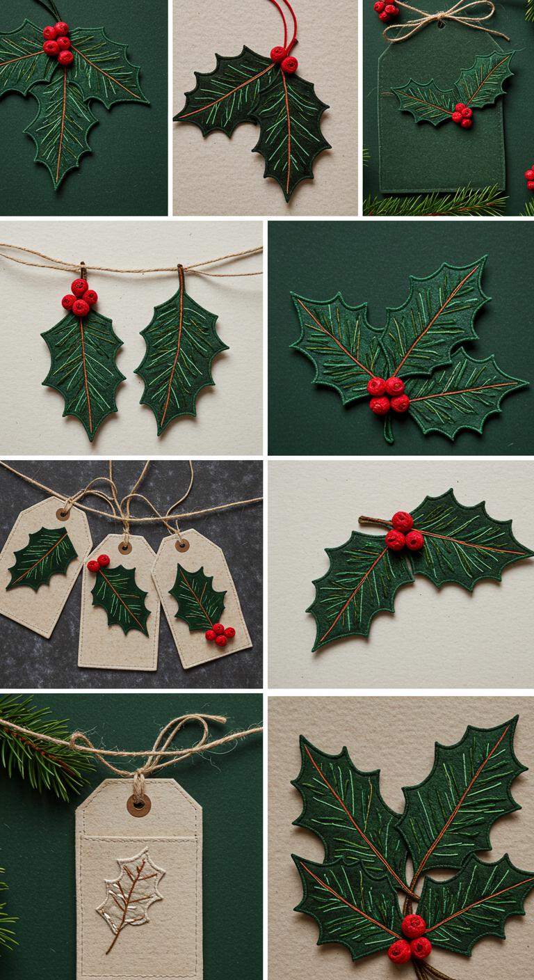 After you finish the Scandinavian star pockets, add a set of textured holly leaf appliqués to bring organic contrast and tactile interest to your holiday pieces. You’ll use simple crochet techniques—post stitches and surface slip stitch—to sculpt veins and serrated edges. Work in holiday colors or subtle neutrals, then attach freely to garlands, gift tags, or pockets for a modern, liberated seasonal accent that’s quick and satisfying.